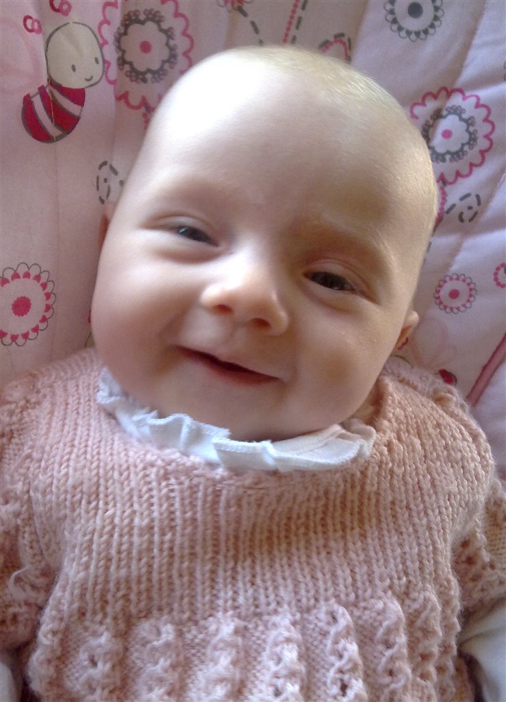 Har herhjemme haft det modsatte problem, og ja det sårer jo én at høre på. Din datter ser da skøn ud! Og hun løber det jo af sig når hun kommer til at kravle og gå