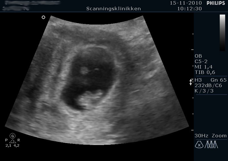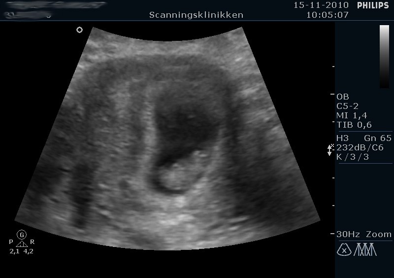 Så har jeg været til tidlig scanning. Alt var i skønneste orden, og jeg fik ros for en fin babyhule. Moderkage så ud til at blive dannet bagtil, så jordmor mente at jeg ville mærke liv tidligt.