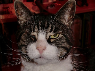Vi skal selvfølgelig ikke glemme August, zs missebror. Åh August, stakkels kat! Han har virkelig følt sig kørt ud på et sidespor - og med rette! Han har været ekstrem vred på mig - og med rette! Jeg tror ikke jeg er helt tilgivet, men han har i hvert fald mere end accepteret z. Når hun græder, så kommer han altid over og sidder ved hende og når hun får mad, ligger han altid på sofaarmlænet ved hendes hoved. Hun er helt og holdent blevet en del af hans flok og han går meget op i, at hun er den svageste og at han nok skal gøre Mor og Far opmærksomme på, når hun har brug for hjælp. Men han er godt nok ikke videre imponeret over den nye måde Mor snakker med alt og alle på: en høj syngende stemme, der siger alle sætninger mindst to gange, med et lille "hvaaaaa?" bagefter - UPS! så blev man lige MEGAmeget Mor-agtig!!