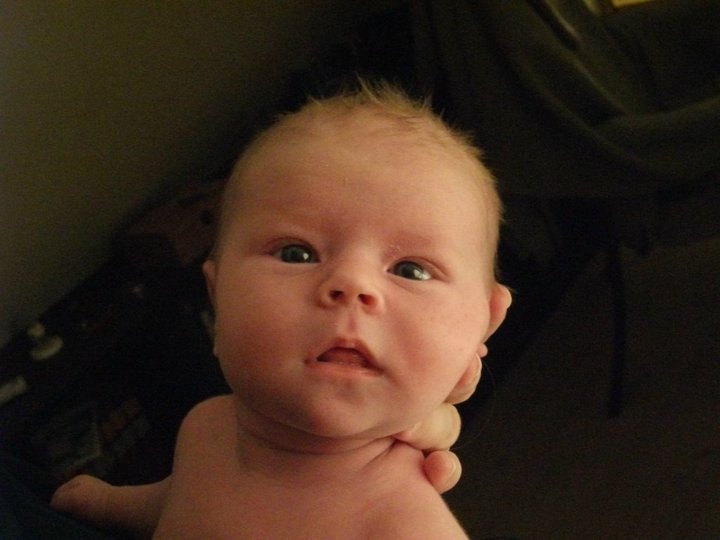 Heldigvis er z ellers utrolig glad og utrolig nem, man får et stort smil hver morgen når man henter hende i vuggen og mange smil i løbet af dagen når vi leger og snakker. Med Søren kan hun ligge og fortælle og fortælle og lave benspjæt så hun næsten letter fra sofaen. Den anden dag snakkede de læææænge sammen og da jeg spurgte hvad de snakkede om, svarede Søren "Andengradsligninger!" som det mest naturlige i verden - jaja, hun er Fars tøs ;-) Det er da overhovedet heller ikke til at komme udenom, at hun ligner sin Far helt utroligt meget! Een ting er udseendet, noget andet er hendes mimik, især når hun meget bestemt ikke vil have mere mad, basta! Det ansigt har jeg set mange mange gange på Søren! Og at hun er cirka tre kvarter om at vågne helt op efter hver lur, hvor hun bare skal have lov at ligge og gasse den, lukke luft ud i begge ender og strække sig - det er på præcis samme måde som Søren <3