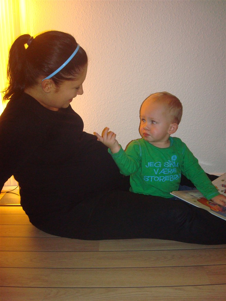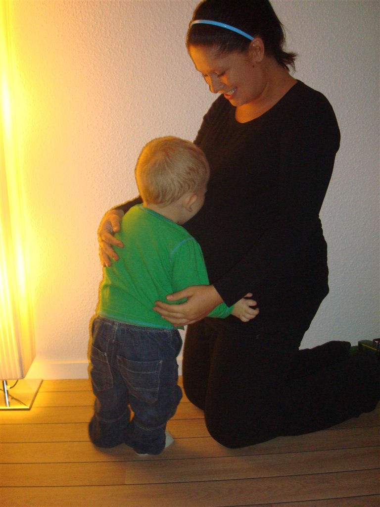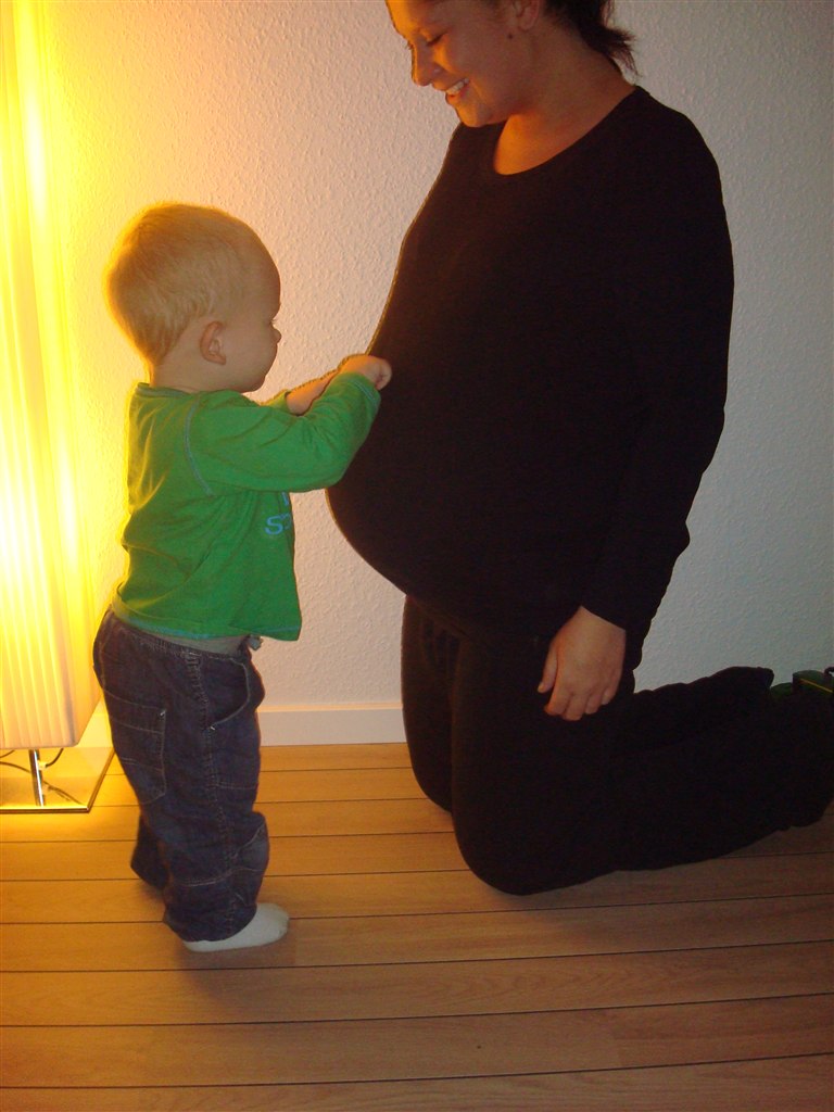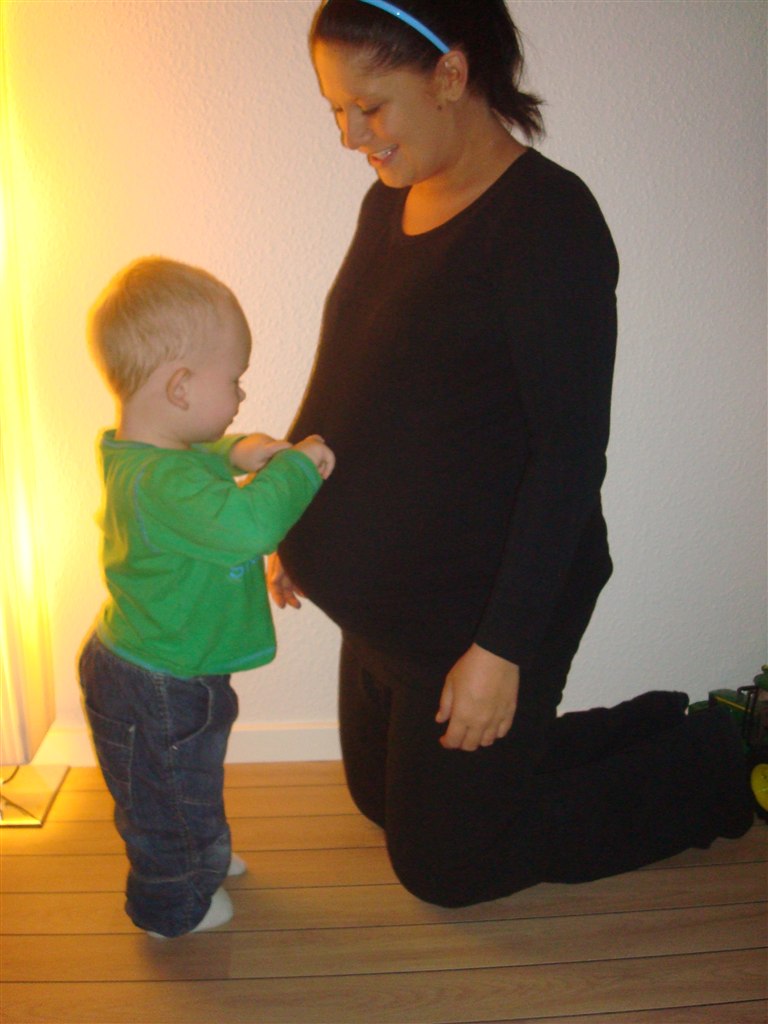 Ja nu måtte vi jo lige ha taget nogle billeder nu hvor jeg blir sat igang imorgen - Men samtidig vil jeg lige vise jer den kommende storebror Tino som er meget interesseret i maven fordi den bevæger sig og kan sige sjove lyde