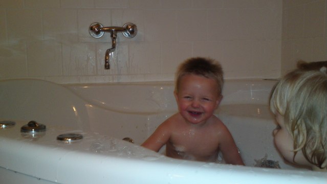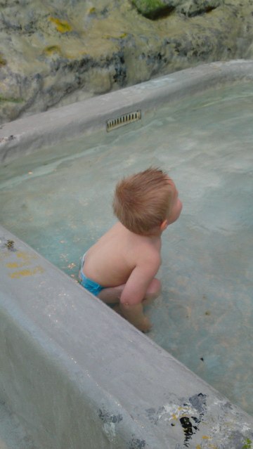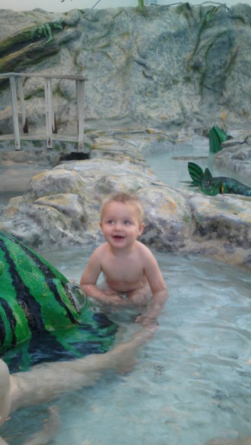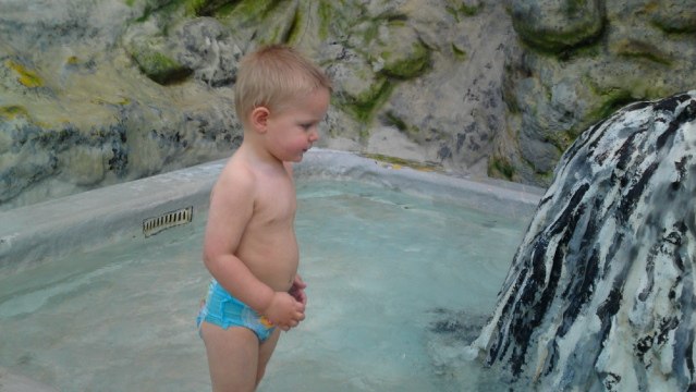 I det hus hvor vi boede var der spabad og den første aften vi var der var han i spabad, super hyggeligt, men man skulle lige være hurtigt for sådan et er godt nok glat for sådan nogle små nogle.