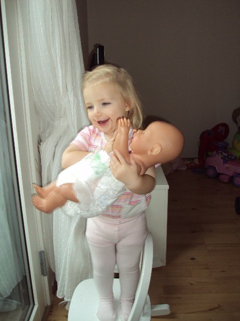 Men ud over det..så hun bare sådan en glad pige med krudt i røven, og prøver virkelig hendes mor af... Hun har så meget humor, det troede jeg ikke så små skabninger havde, men det har hun godt nok...en rigtig drillepind....