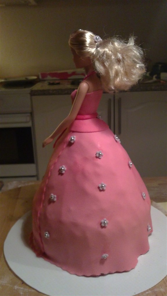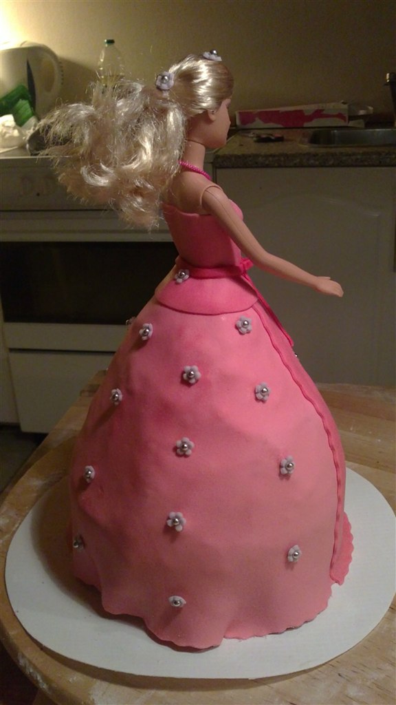 På sløjfen tog jeg rester af det lyserøde fra kjolen, og smed en dråbe Christmas red i, så den blev en lidt anden rød farve en resten af kjolen....
