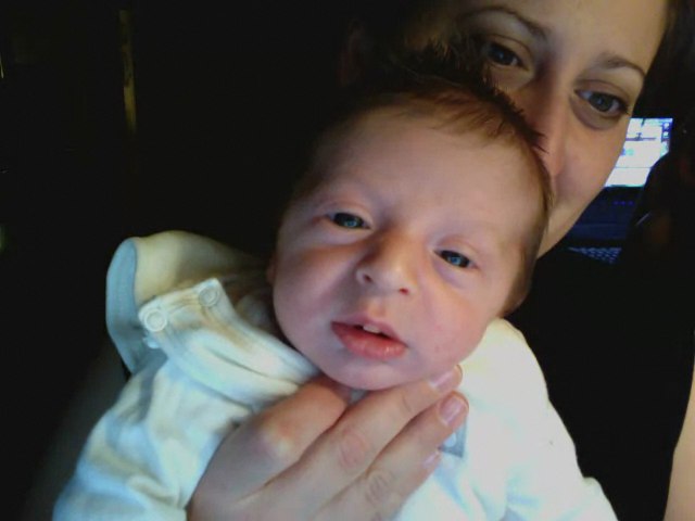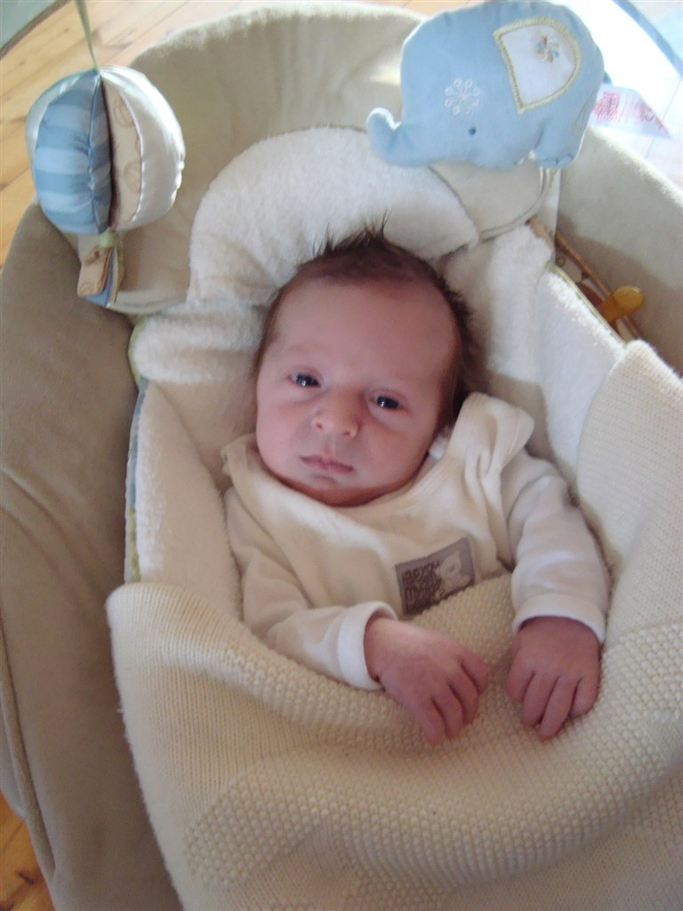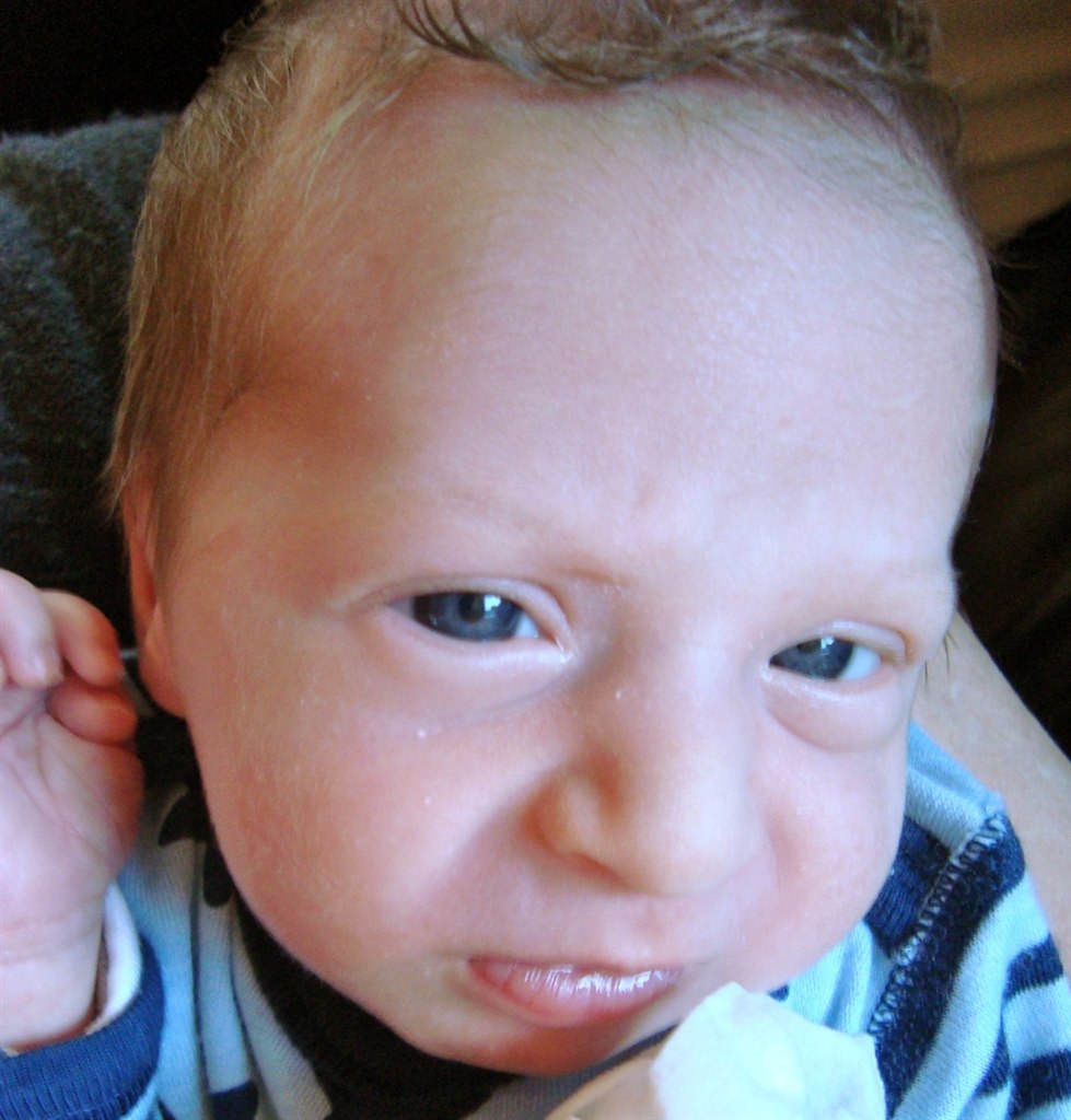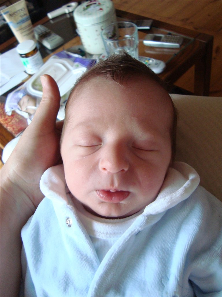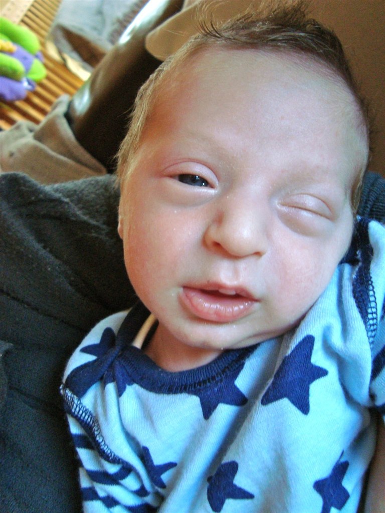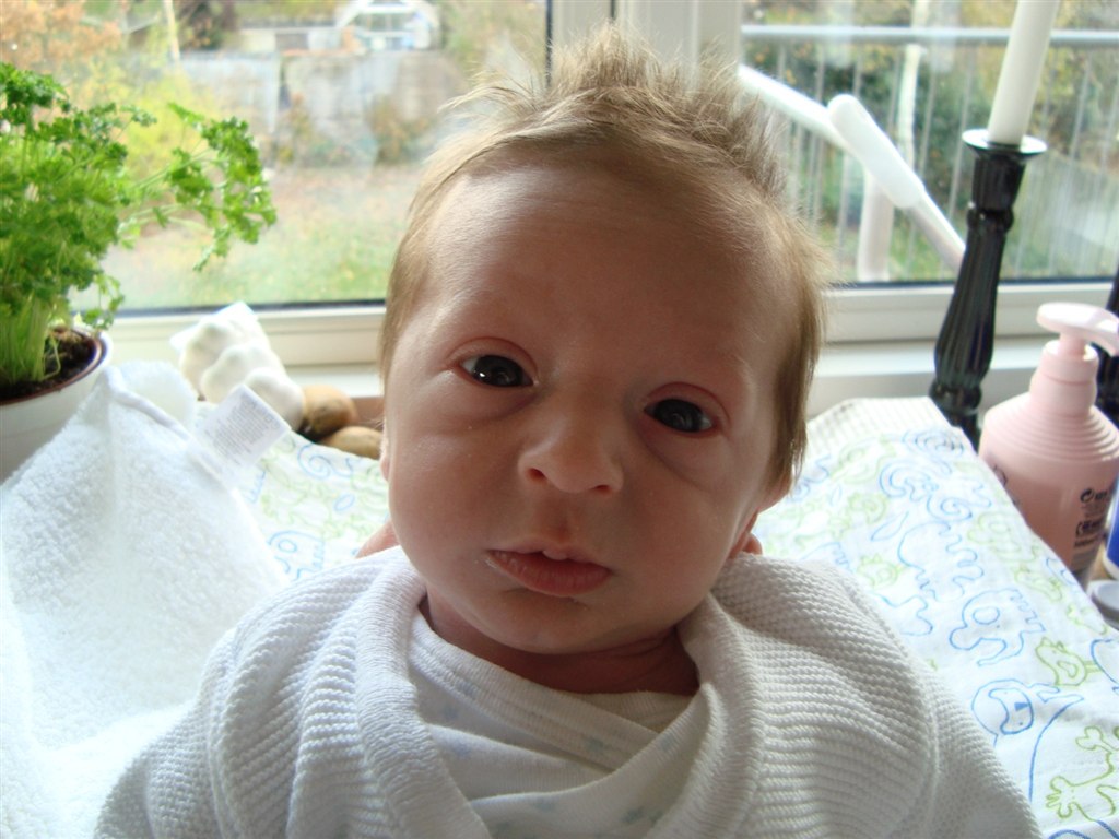men vi fik istedet en lille baby med lyst hår (leverpostej farve) og lyse øjne ( de er grå nu, man ændrer nok farve om nogle måneder) - han var dog 100.000 gange smukkere en jeg forventede