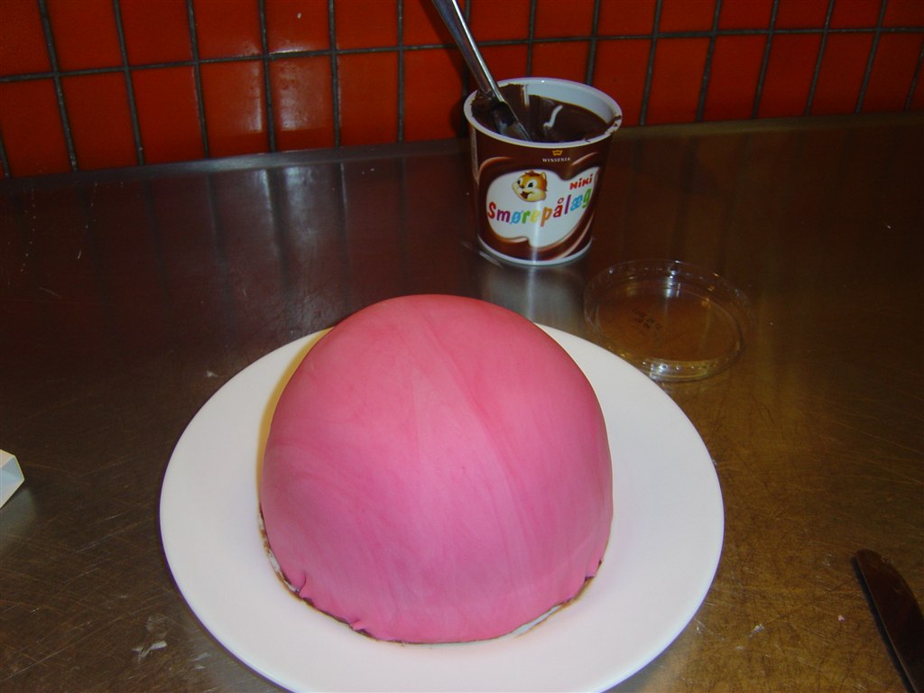 God idé med sådan én. Du kan sagtens bruge nutella det er bare mere blødt end smørcreme, men kan godt bruges. Hvis du kun har rød og brun ville jeg bruge lidt, lidt brun, og du kan sagtens lave den dagen før. Har aldrig oplevet at det revner, bare husk at få den på køl
