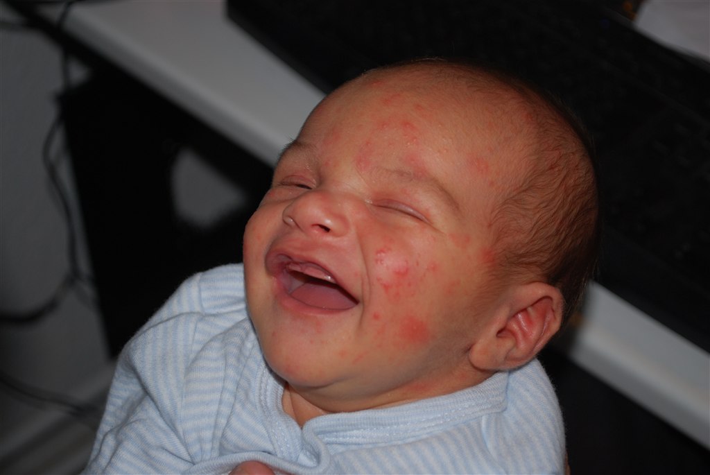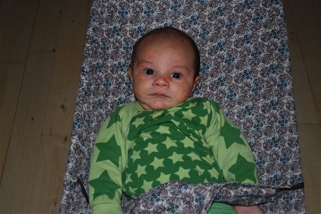 han har været så heldig at få de dejlige homon knopper som babyer jo får. Han spiser og sover som han skal og vågner de der ca. hver 3 time. Ud over det så er han i sidste uge blevet vejet til 4 kg og så målte vi ham selv til at måle 56 cm.
