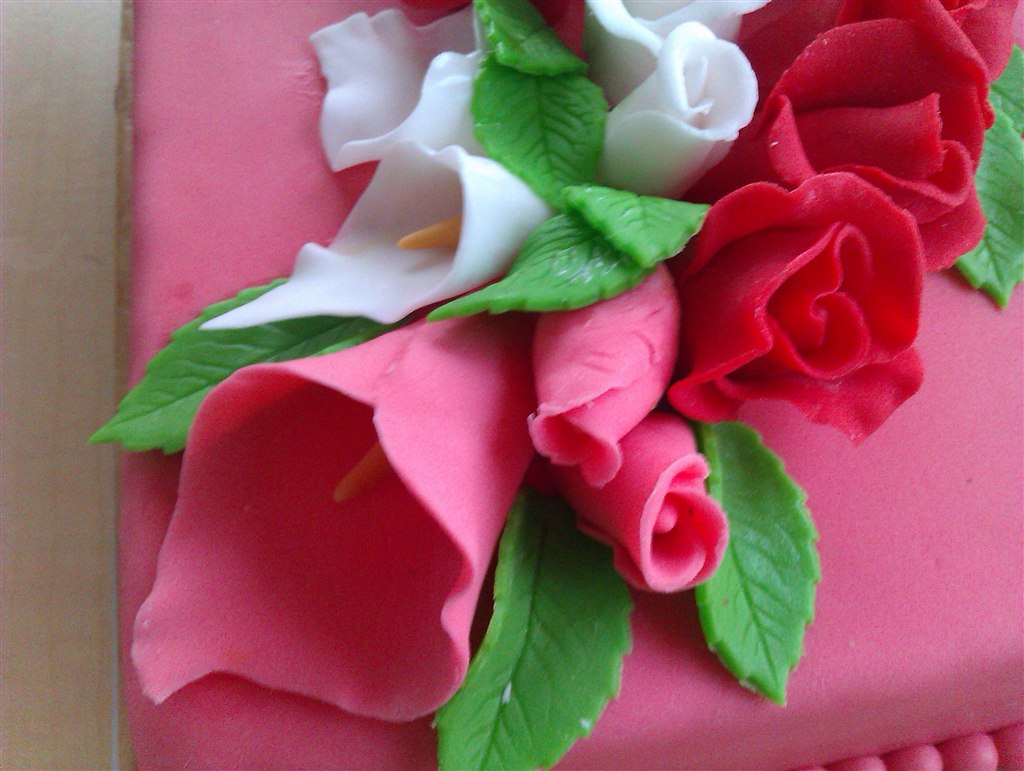Min 3 bestillngskage, lavet med chokoladekage med chokoladesmørcreme i den lyserød del og hindbørcreme i den blå del. Den runde kage er fordi hun er OB fan, men den blev ikke så god synes jeg og var også bare lidt for sjov.