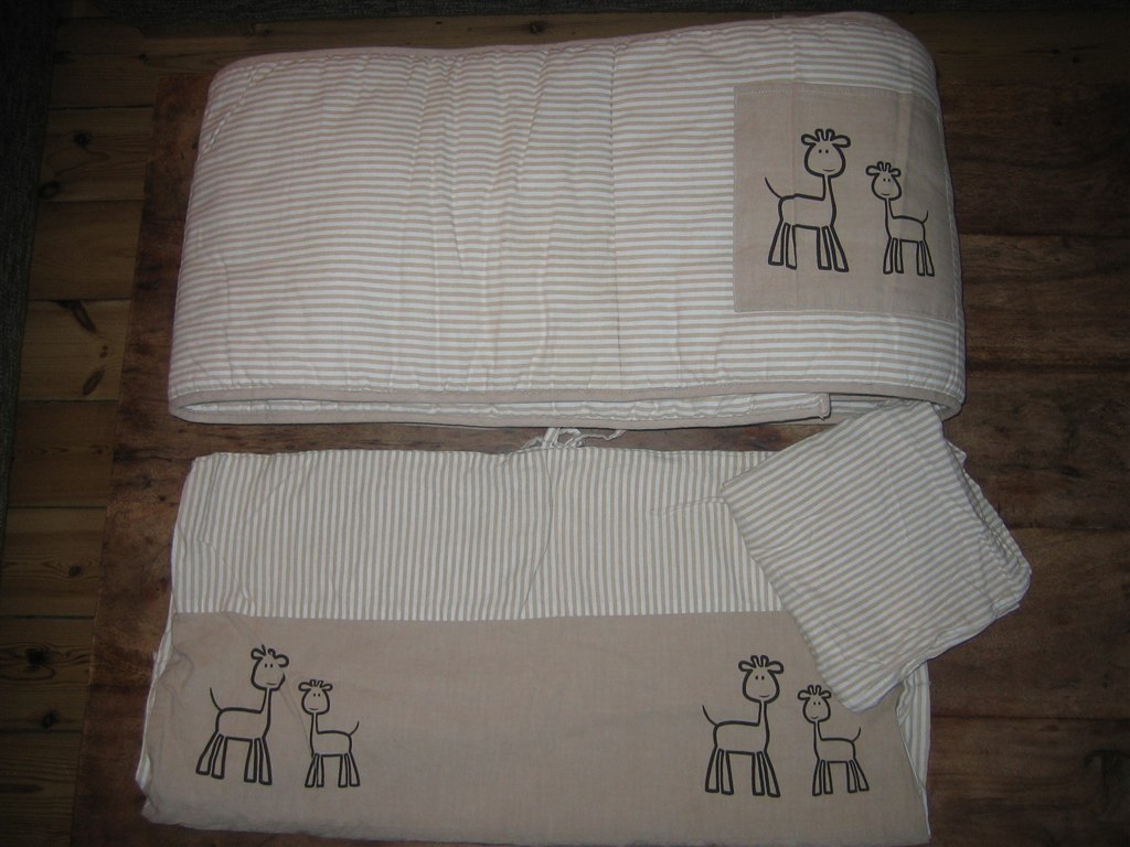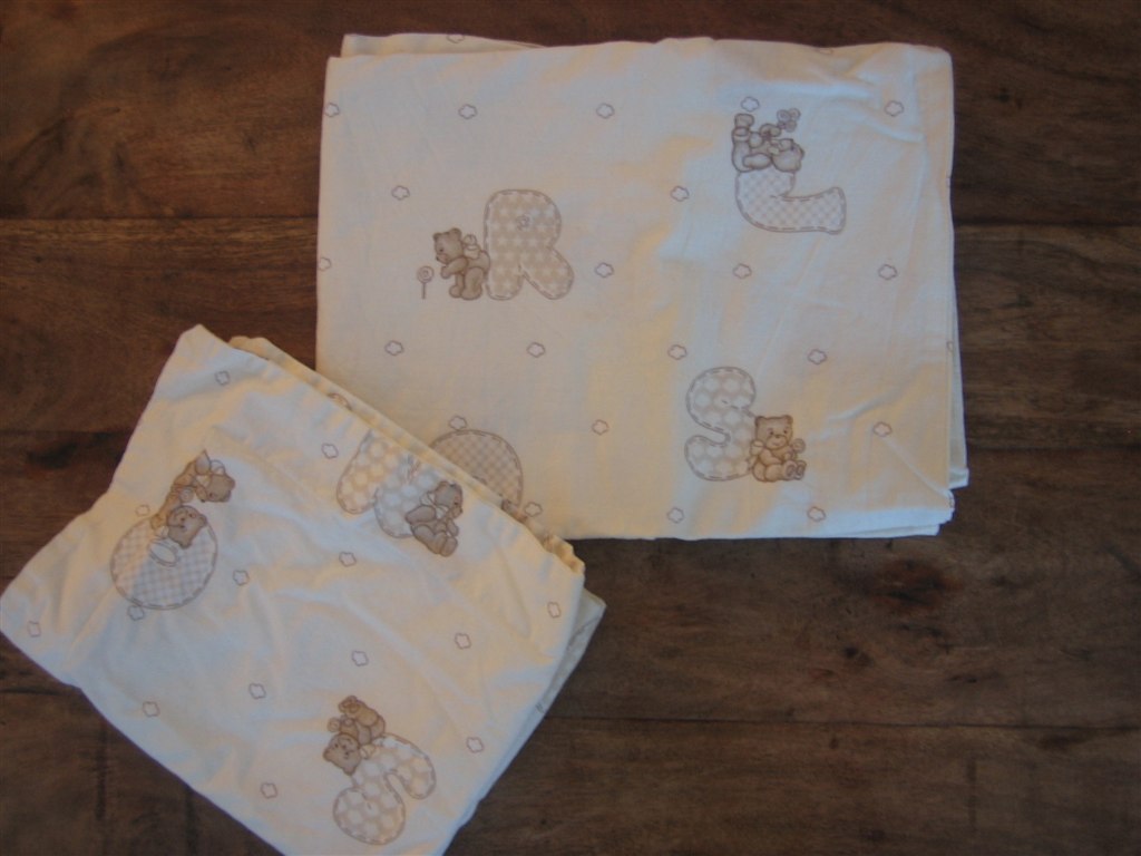 3: Sengerand med matchende baby sengetøj. OBS: Der mangler en snor på sengeranden. 50 kr