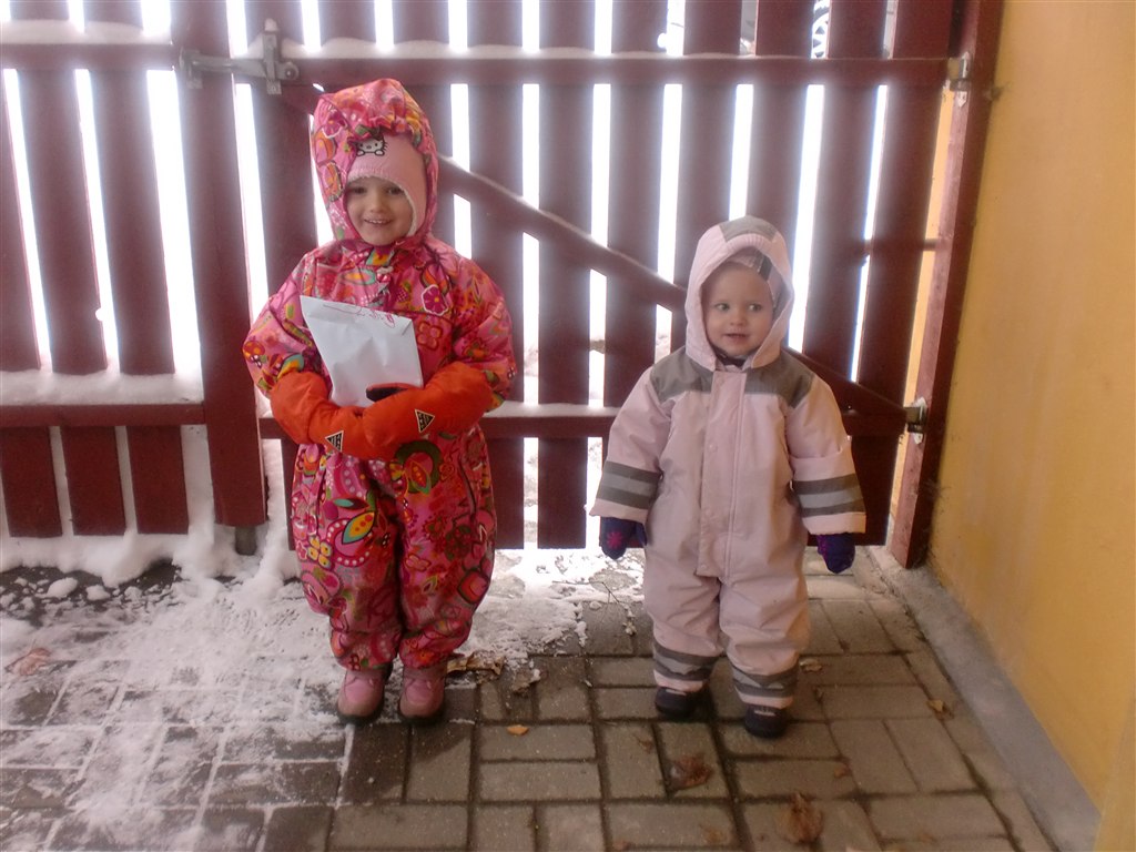 Og så gik vi ud og sendte dem til postmanden ved at smide kuverten i vores postkasse....... og så glemte vi lidt om dét igen, mens vi kælkede og legede i sneen.