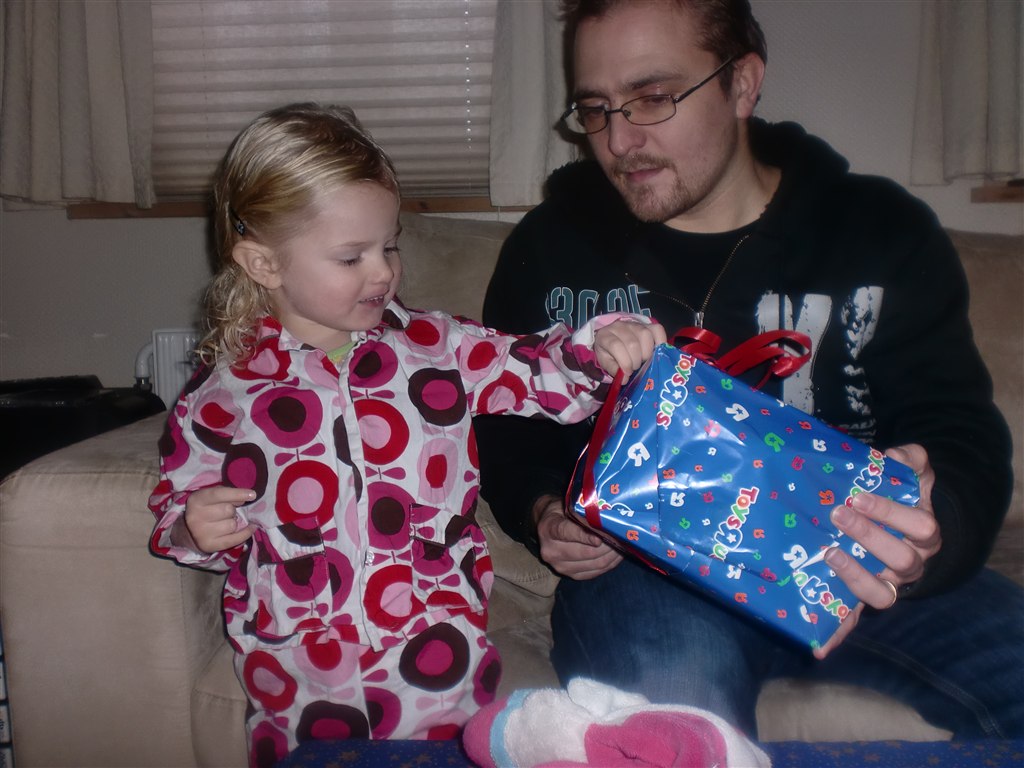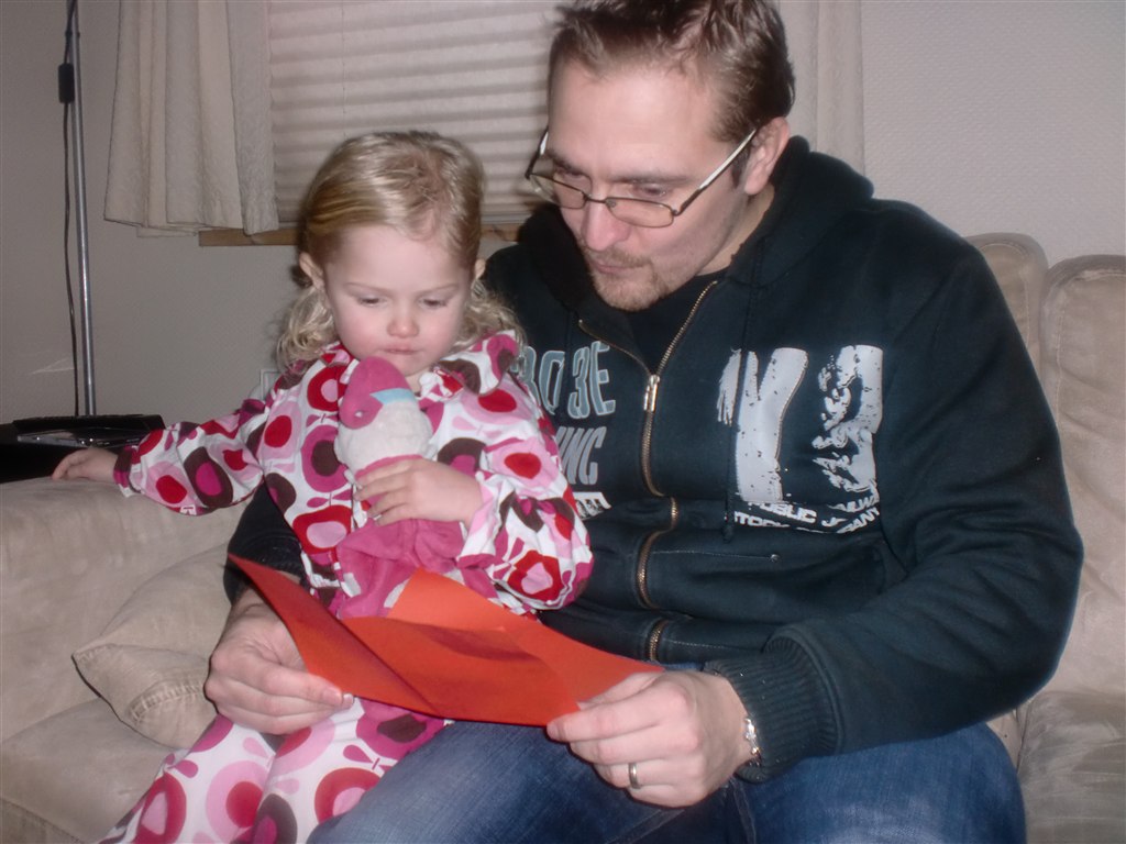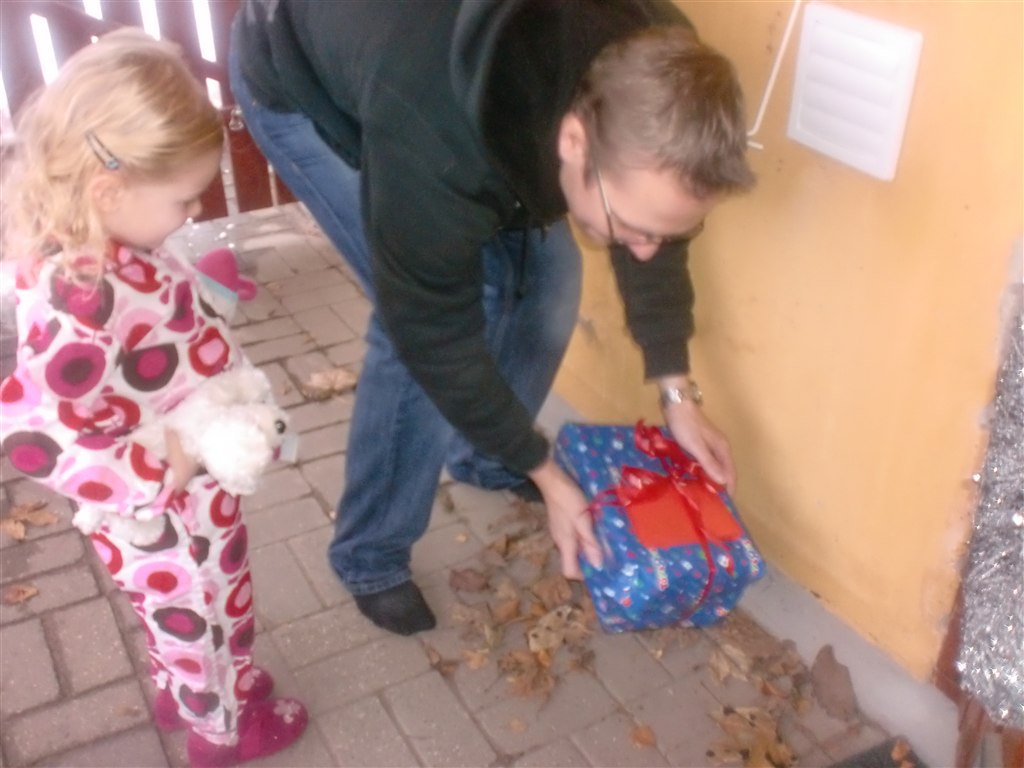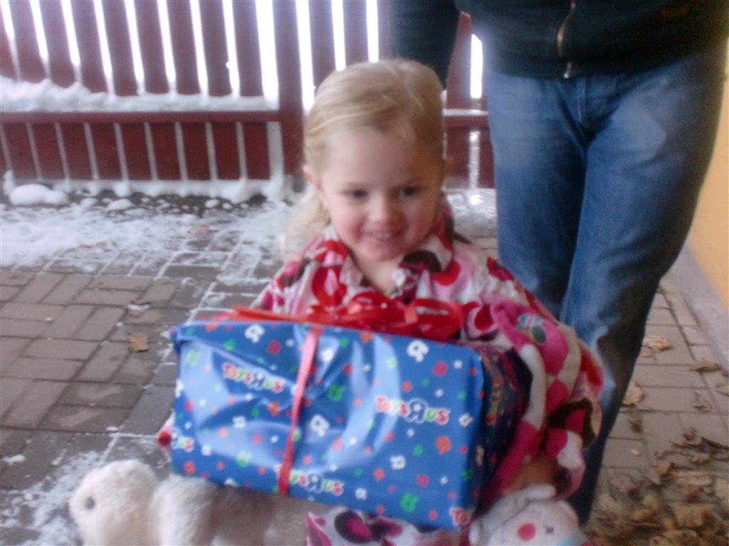 + da hun finder sin gave, får læst brevet højt og ser sin gave.