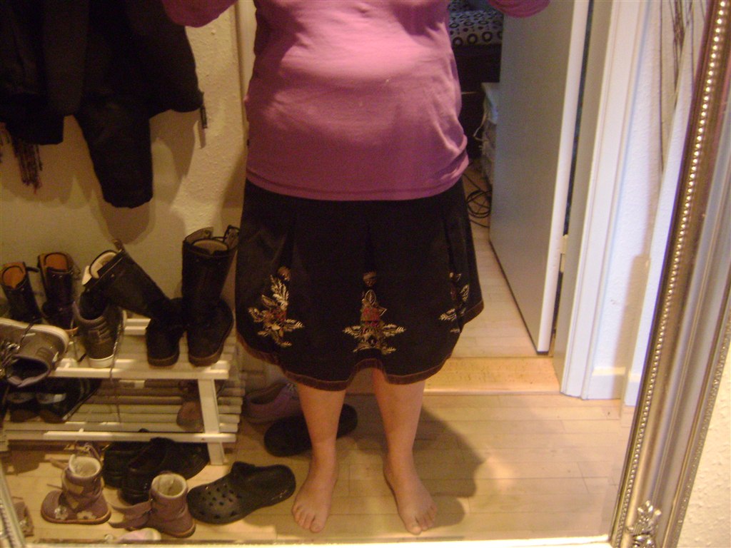 Så er den vist desværre en lille smule for lille endnu. Skal lige tabe mig lidt mere, og skal bruge en ny nederdel til næste søndag. Æv æv