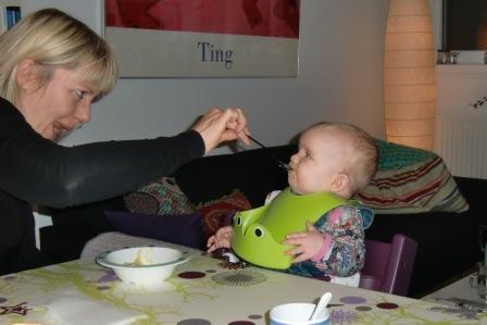 Runa er begyndt, at få rigtig mad...hun gider faktisk ikke det der babypjask (aka grød og mos), så hun har allerede smagt Skipper Labskovs (hos Zafir) og fik fiskefrikadeller idag...se det var jo noget helt andet