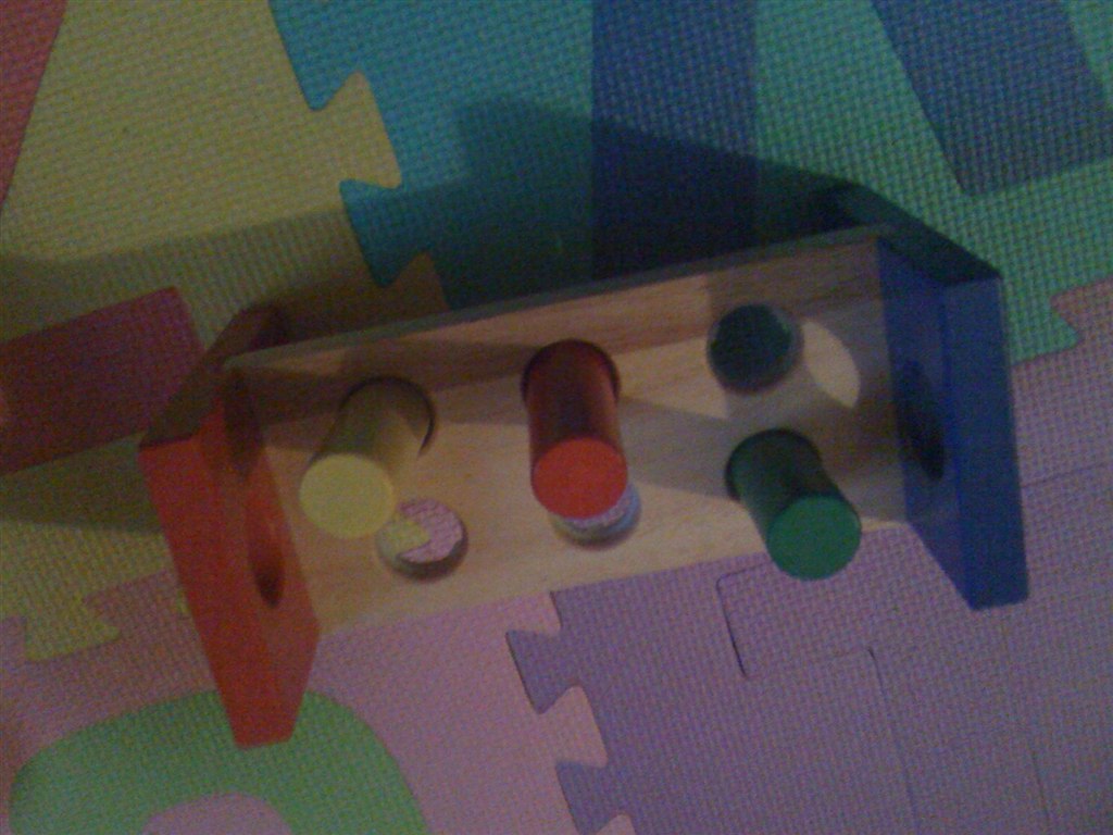 8. Bankebræt - han bruger kun sine pegefinger og bliver helt forpustet for han bliver ved og ved og ved og ved.. med at trykke de farvede klodser ned og fortsætter når den bliver vendt.
