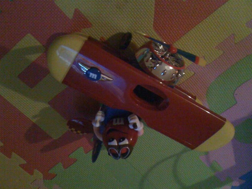 9. M&M's slikautomat/flyvemaskine (uden slik i) Propellen er et hit og når vi flyver rundt med den i stuen.