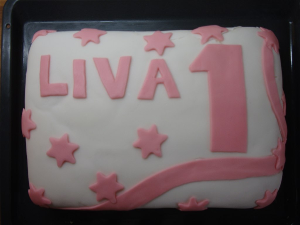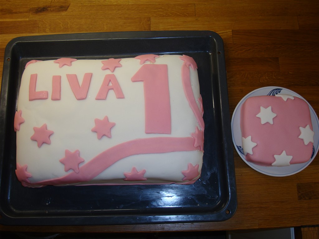 Da Liva blev 1 år sprang jeg ud i projekt "Lav-din-egen-lagkage", efter at have set jeres smukke smukke kager. Så med lidt gode råd og opbakning herinde fra, blev resultatet nogenlunde. Så er ikke helt skræmt ved tanke om at prøve igen.