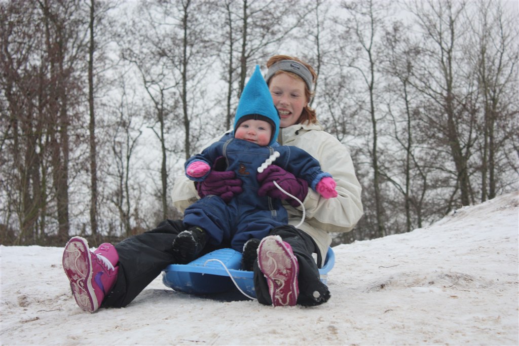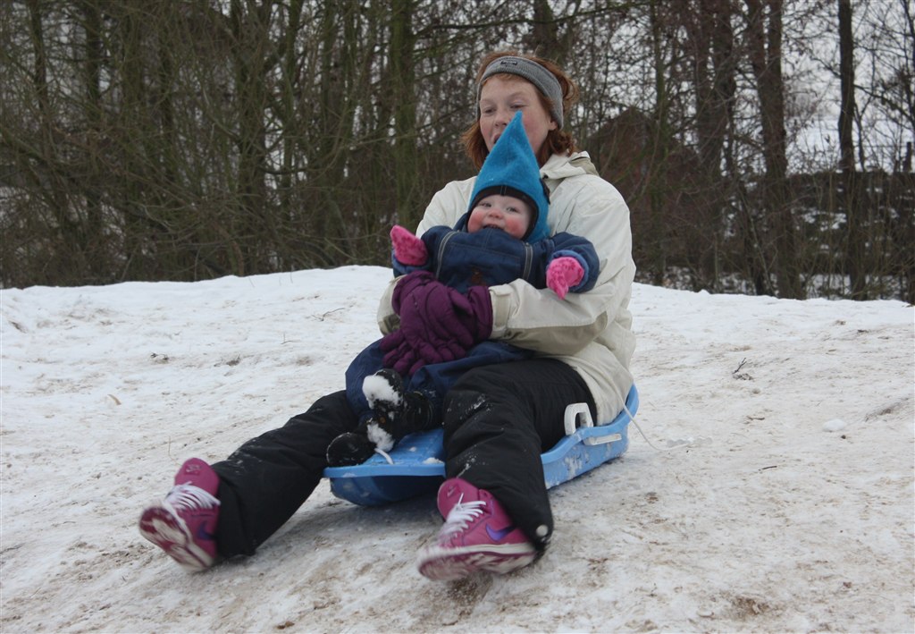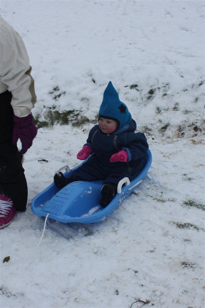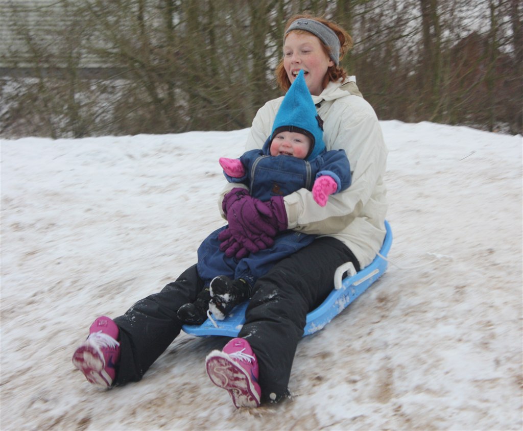 Så kom Liam og mor endelig ud og fik afprøvet kælken!