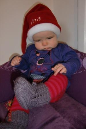 Her er min skønne nissepige, der er meget optaget af sin ene fod