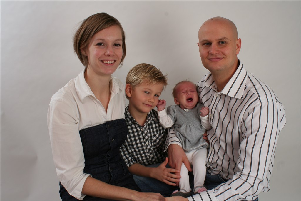 MEN, inden det nåede at stoppe helt, var vi lige hos en prof. fotograf og få taget billeder er os alle, og nej, hvor var hun bare ikke glad!