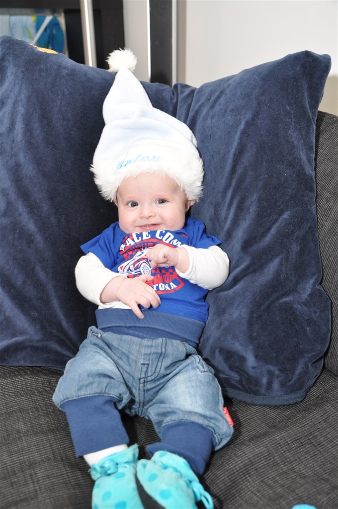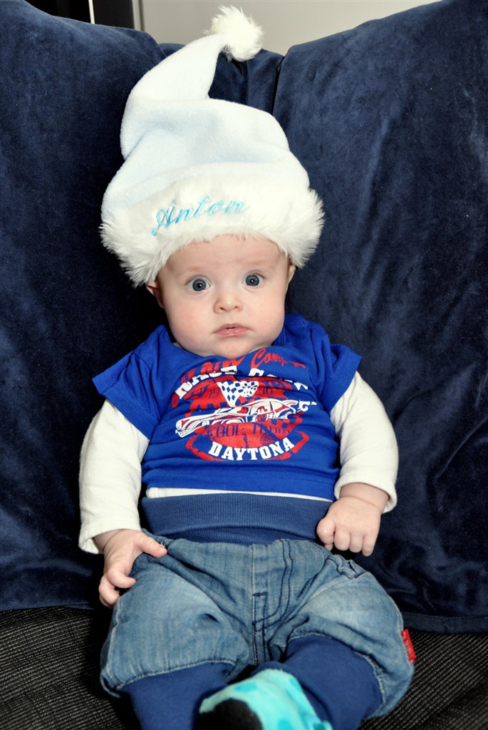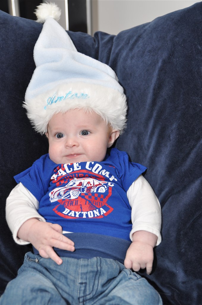 Så fik jeg endelig taget nogle nissebilleder af lille Anton, det er blevet til "prøvefotos" for er ikke helt tilfreds med baggrunden...!
