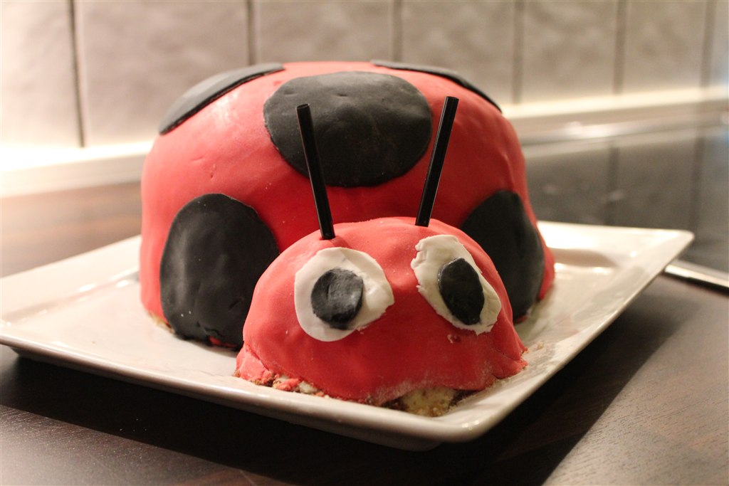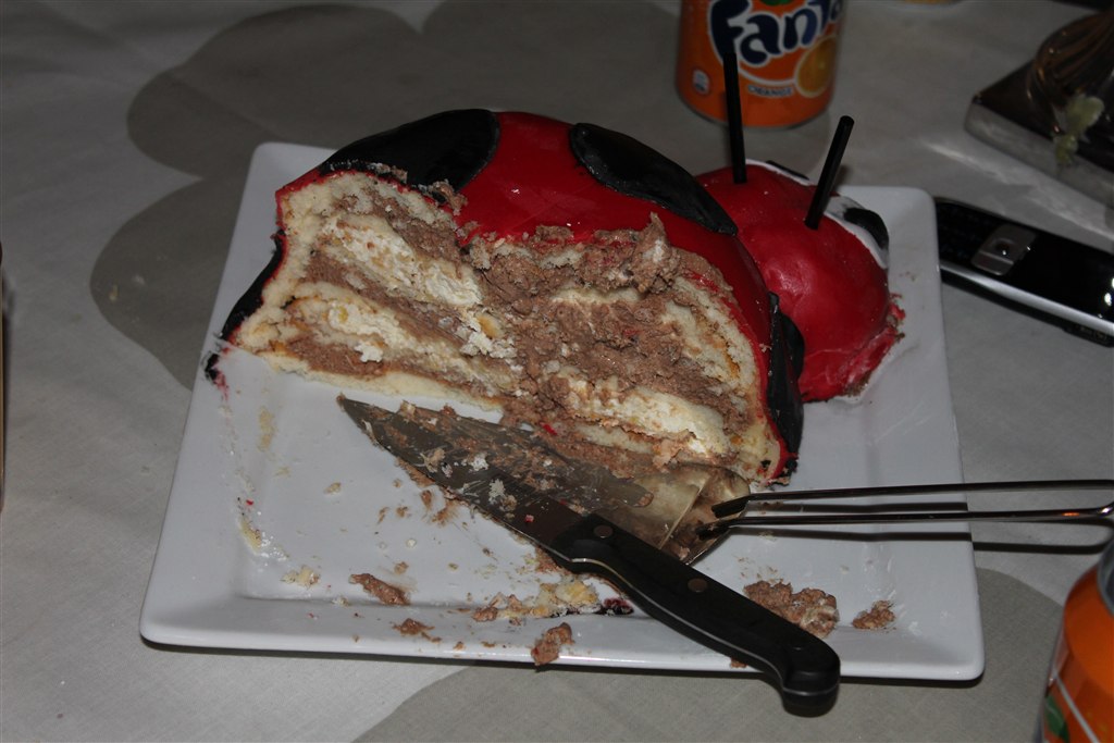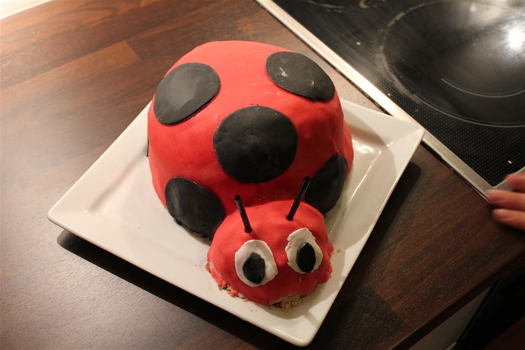 Mai-pigen skriver: Her er så min 2.kage.. Mariehønen! Med lyse købebunde, skildpaddecreme, og Zafirs noget så lækre ananas mousse, ej hvor det smagte godt..