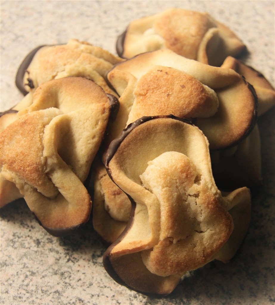 Mørdejen udrulles forholdsvist tyndt & udstikkes i cirkler, ca. 8 cm i diameter. Læg dem på en bageplade beklædt med bagepapir. I midten af hver cirkel lægges en lille smule nougat.