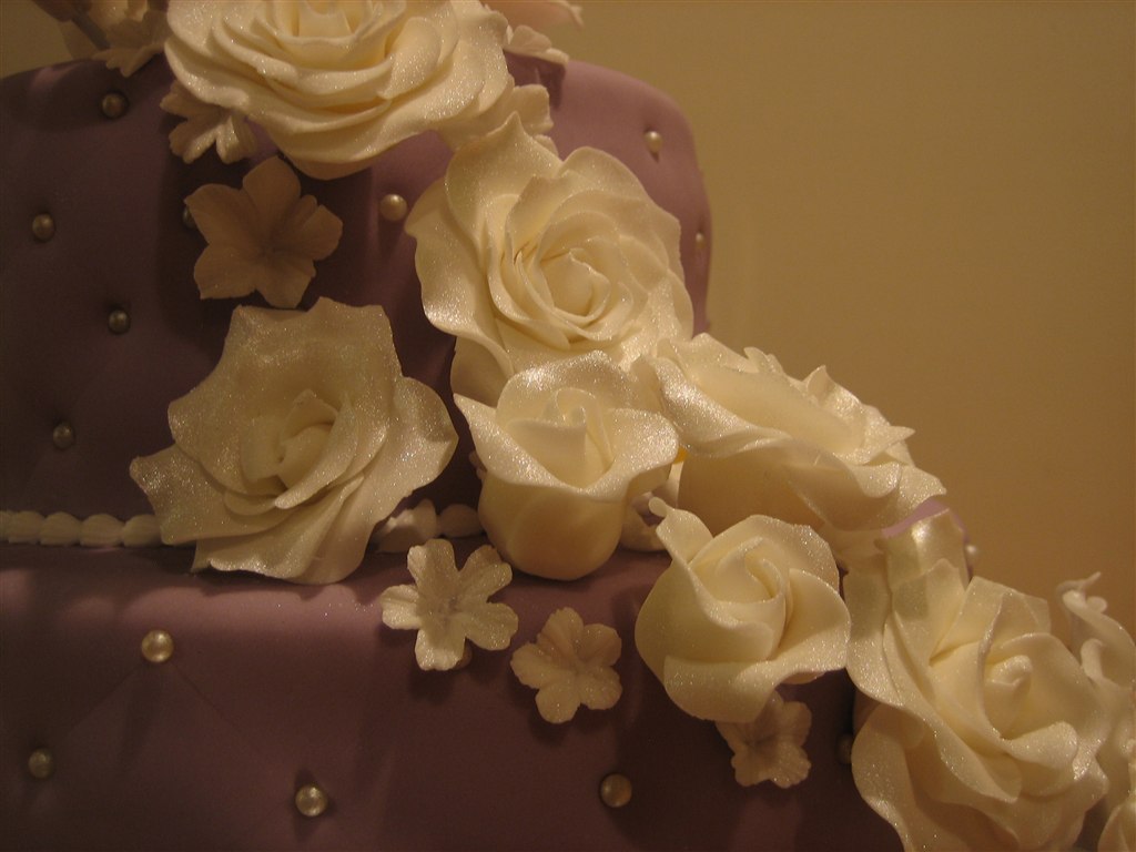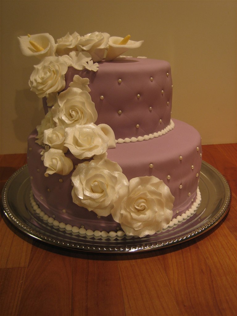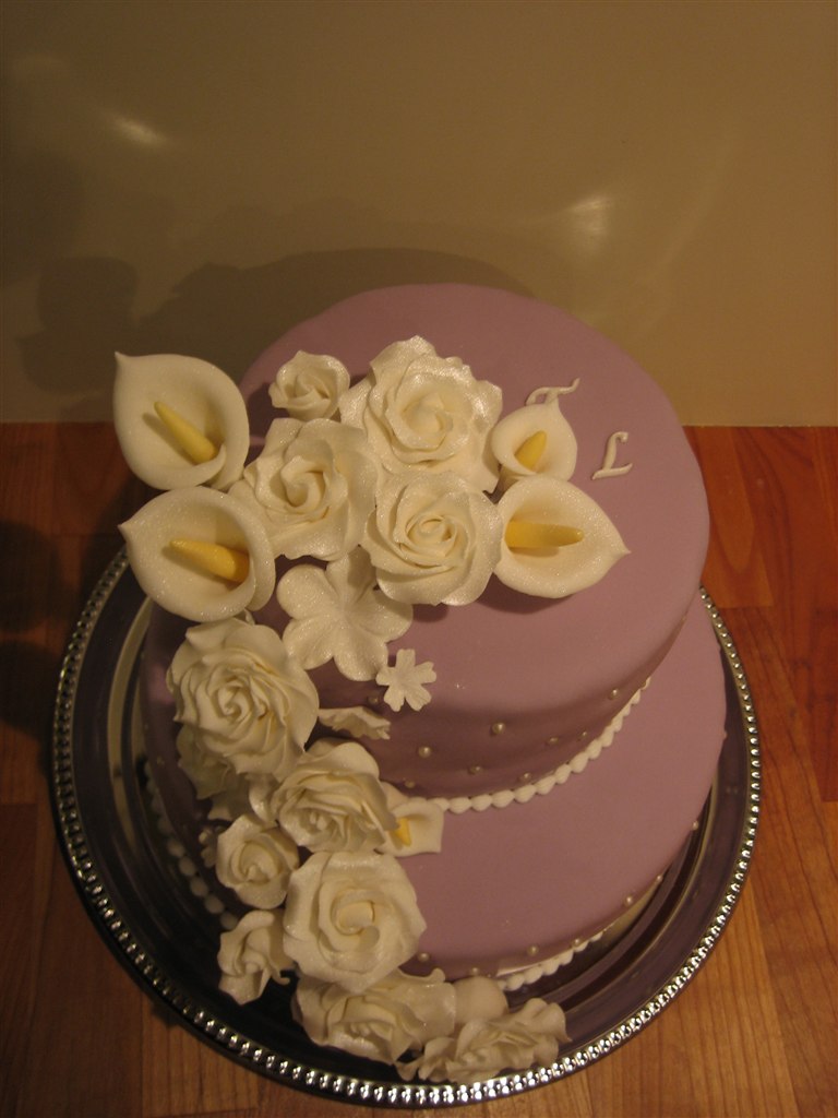 Er helt vild med den er lilla, og ikke cremefarvet som så mange andre bryllupskager... Også er blomsterne jo super smukke
