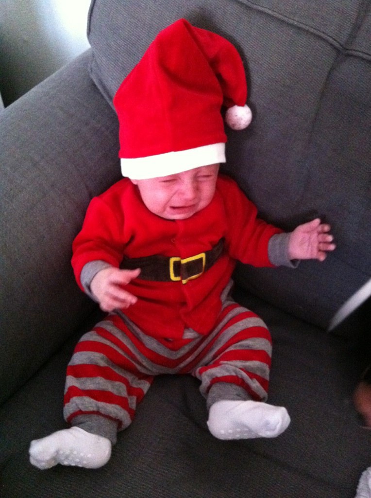 Ja, som billederne tydeligt viser, ELSKER han jo nissetøjet (ironi )