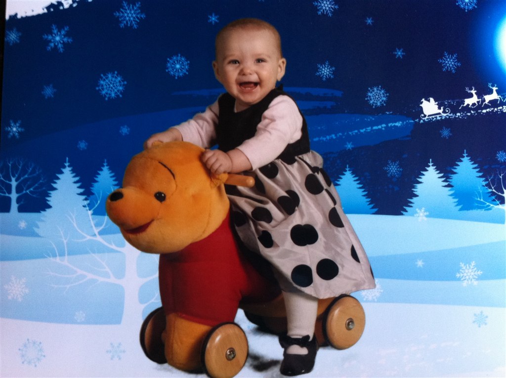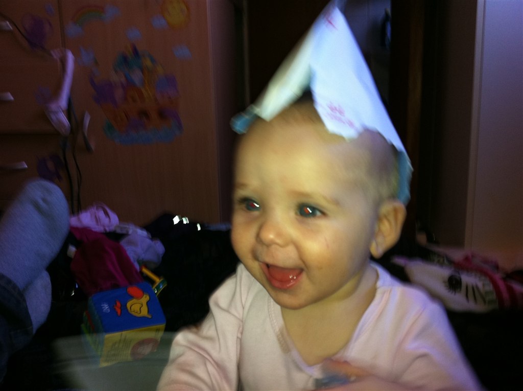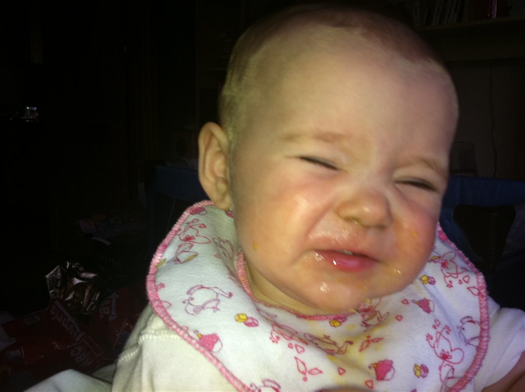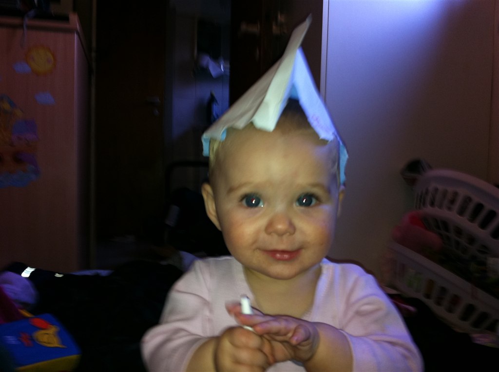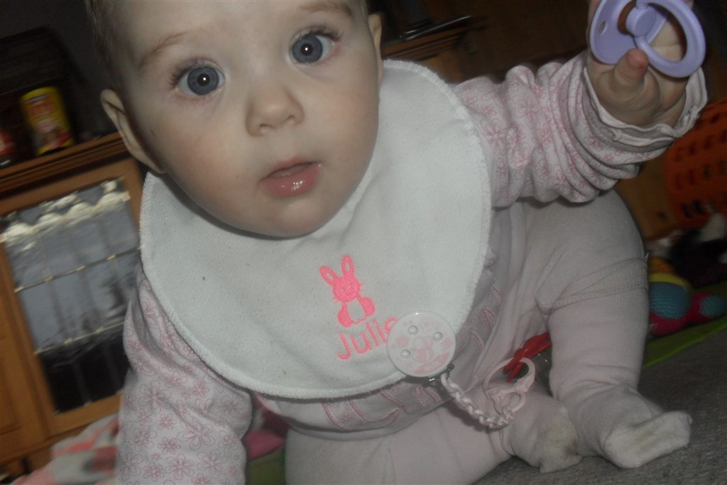 Lone H. skriver: Min Lille bitte Baby er i dag blevet 8 måneder Hun er så syg i dag, så der er ikk blevet sovet i en uge men hun siger klare tydelige ord nu, Rejser sig op af ALT og går med ting foran sig ( nogle gange) og hvis vi holde hende i hænderne så går hun