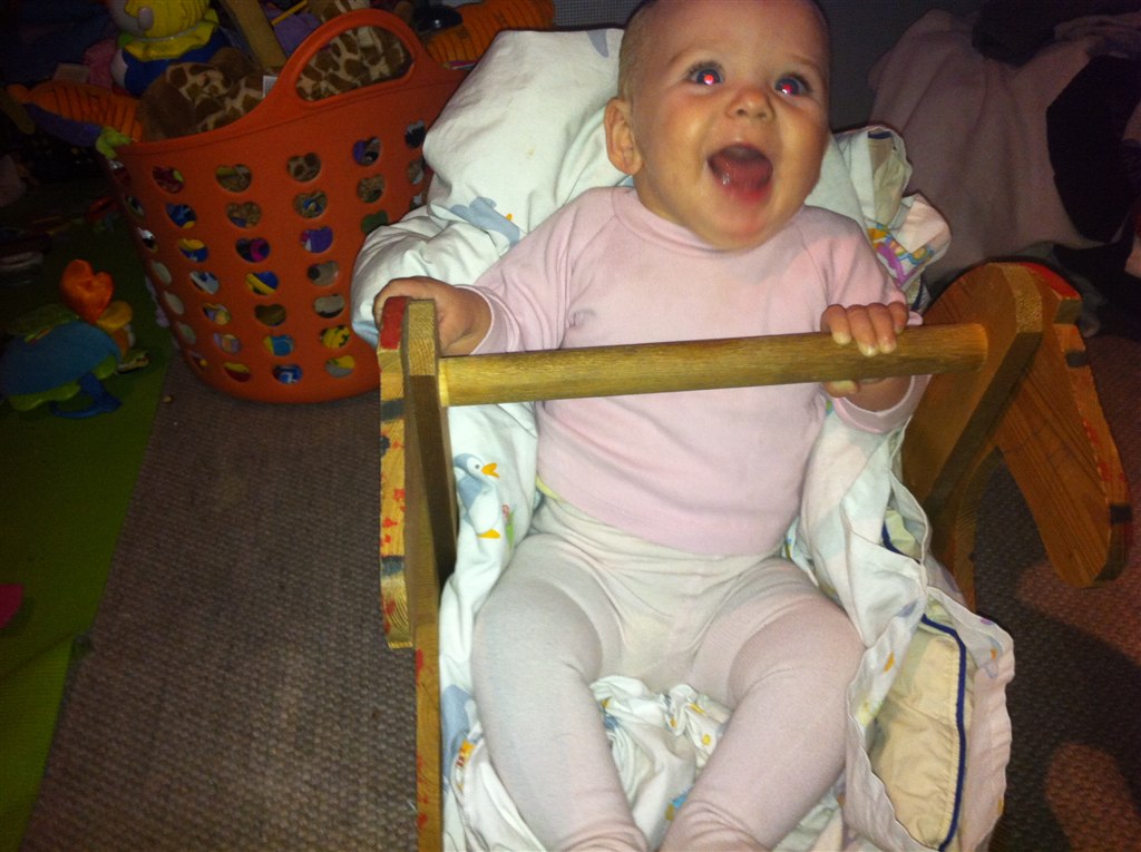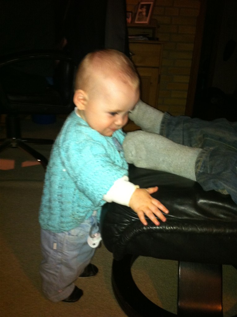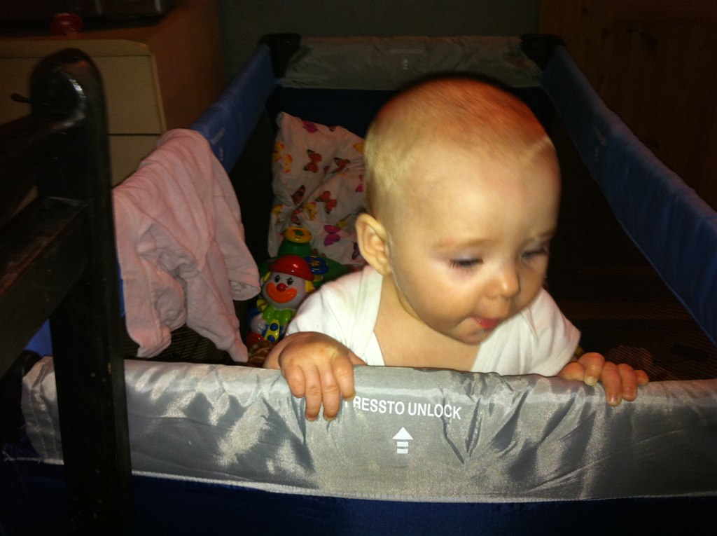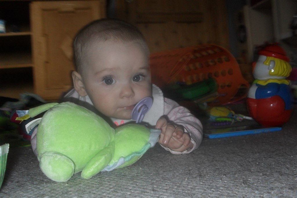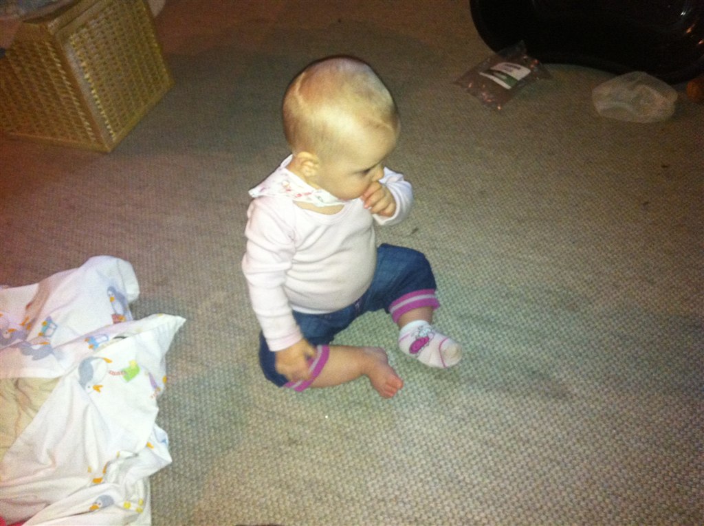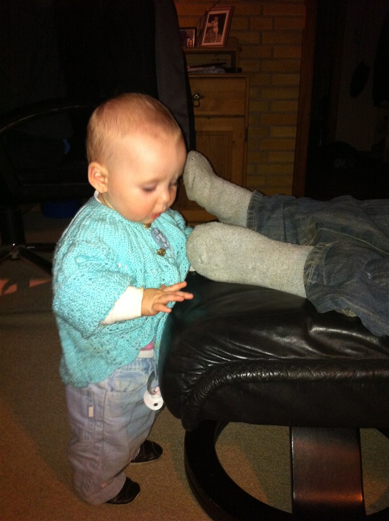 Min Lille bitte Baby er i dag blevet 8 måneder Hun er så syg i dag, så der er ikk blevet sovet i en uge men hun siger klare tydelige ord nu, Rejser sig op af ALT og går med ting foran sig ( nogle gange) og hvis vi holde hende i hænderne så går hun