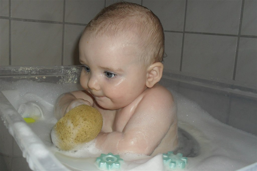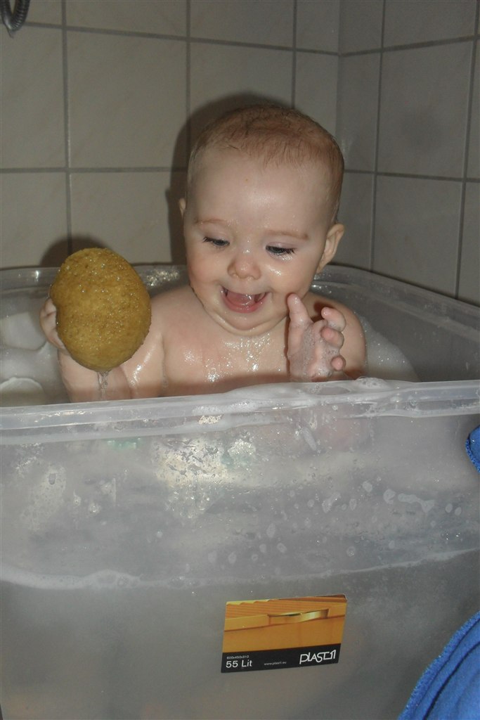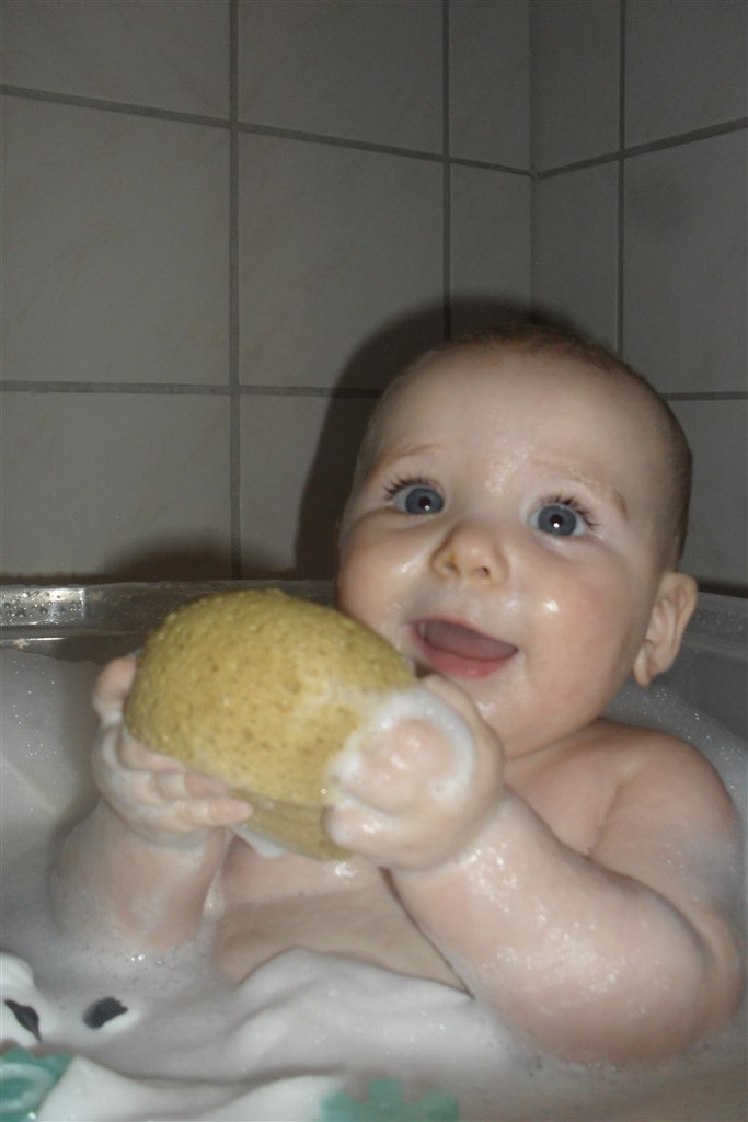 Ayasmor skriver: sikke en skøn datter i har.. Er helt vild med det billede hvor hun sidder i badet og er opslugt af badesvampen..