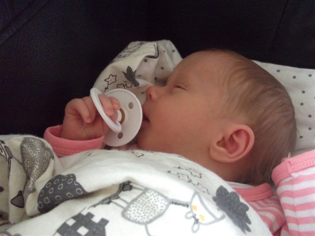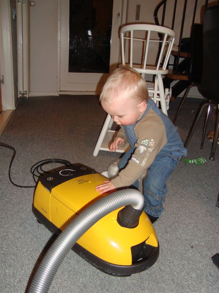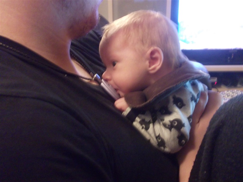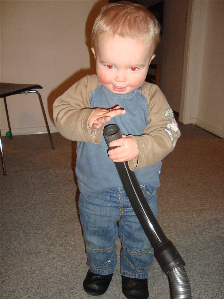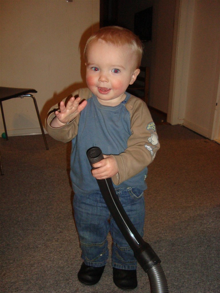 Og får helt dårlig samvittighed - har da fuldstændig glemt at sende dig et billede af ham med hue + cardigan... Men de er blevet flittigt brugt, og vi har været rigtig glade for dem. Så både hue og cardigan er godt tyndslidte nu