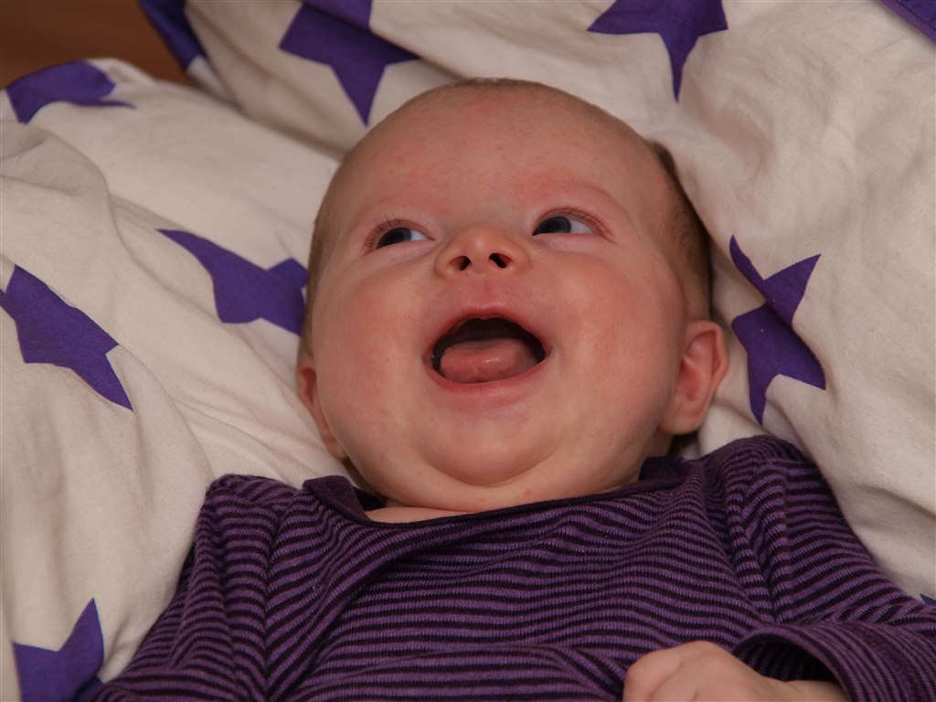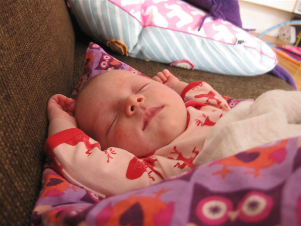 Hun sover..... (hold lige fast) mellem 8 og 9½ time i streg om natten...!! Derefter er hun vågen 1-1½ time af gangen mellem sine lurer.... så man må sige, at vi har fået en datter med et utroligt godt sovehjerter....