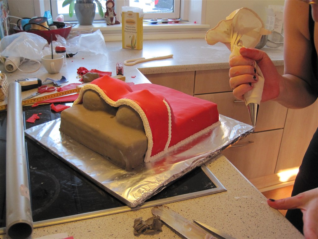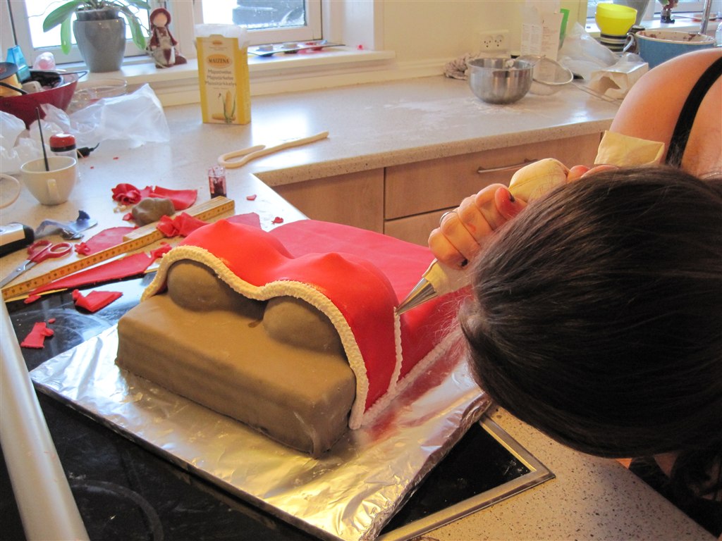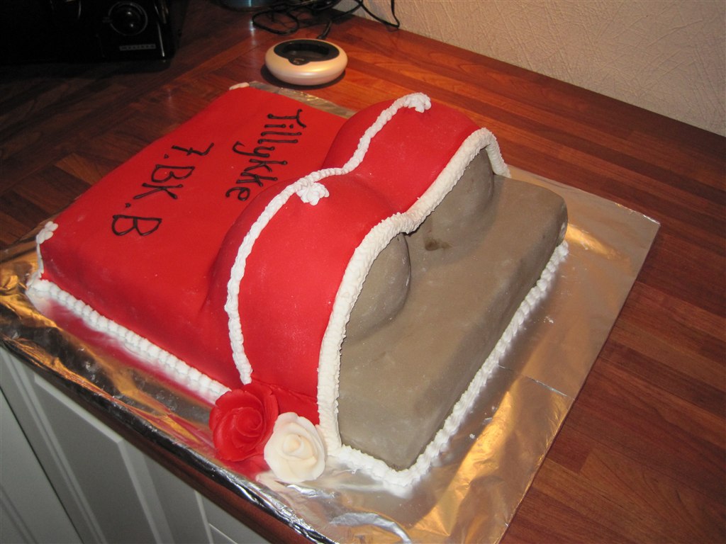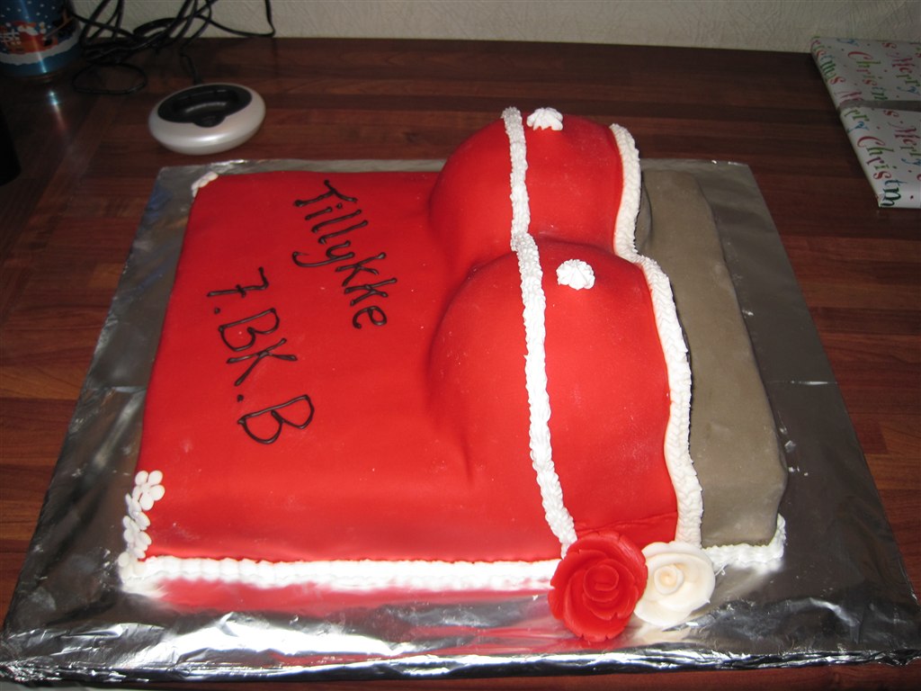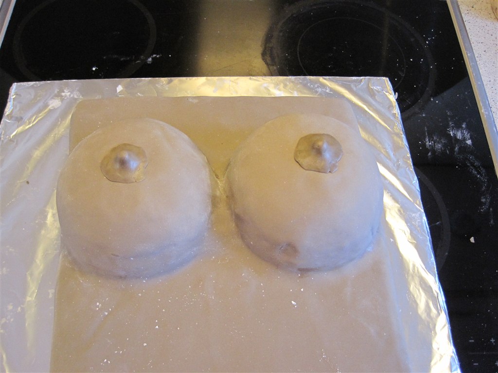 Det er min søster klasse, hun blev udlært i fredags og så skulle der jo en lille kage til, og bygningskonstruktør er jo en mande præget verden, så derfor bryst kage..