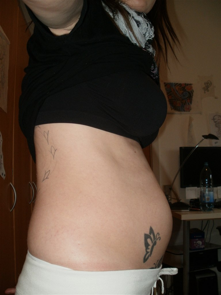 Det kan jeg ikke huske.. nu har jeg en tyk mave i forvejen, så den blev bare omtalt som gravid istedet for tyk