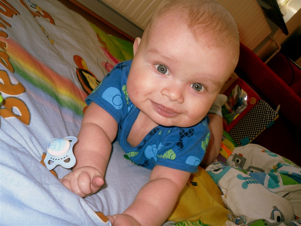 Nu er Sebastian langt om længe blevet enig med hans mor i at det ikke er farligt at ligge på maven. Bedre sent end aldrig