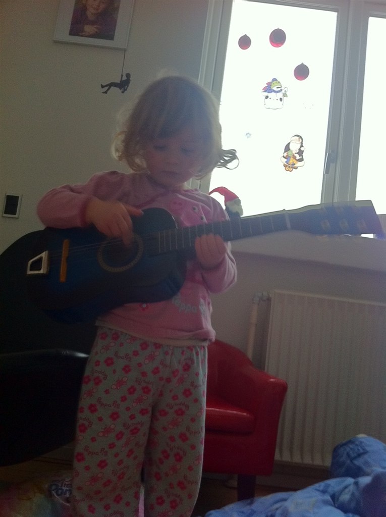 og så lige et billede af tøsen, med den gave hun fik af julemanden imorges