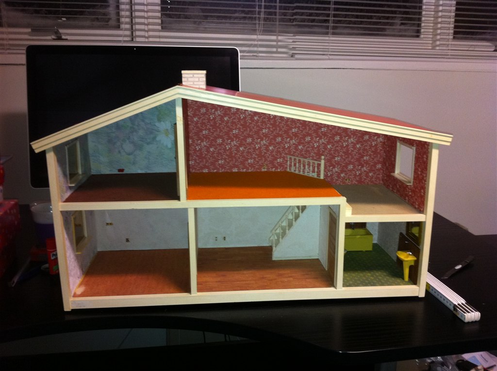 TbCp skriver: Har lavet et dukkehus min datter skal have i julegave imorgen.Dertil får hun selvfølgelig div. møbler, dukker og husdyr. Her er et før og et efter billede