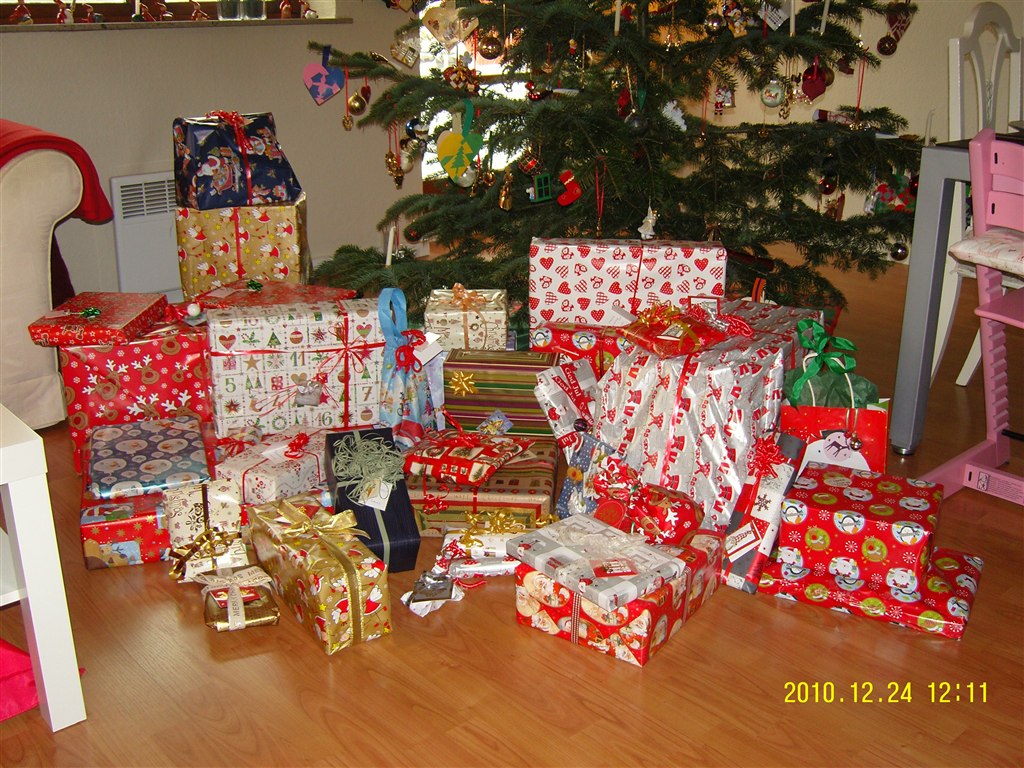 MariaJ skriver: Ih, hvor et fint pakkebjerg. Vi har været ude for et år, at vi måtte sende en af gaverne hjem med posten, fordi vi simpelthen ikke kunne stuve mere ind i bilen, da vi skulle hjem efter julebesøg ( og dengang havde vi endda ingen børn )