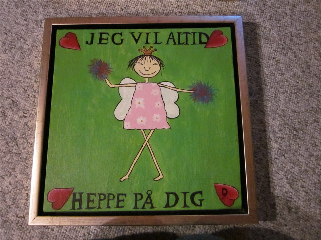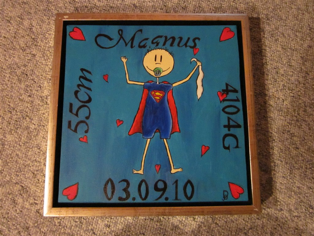 De to første billeder er de billeder jeg fik lavet i gave til min venindes søns dåb. Drengen er i supermandskostume fordi han blev født med den ene arm fremme. He he.. Og pigen repræsenterer mig der jo heppede på hans ankomst med røde og blå pomponer. Jeg var SÅ glad for de billeder!!!
