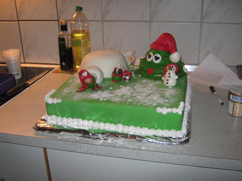 Her er julekagen til klassejulefrokosten som er lavet i samarbejde med en klassekammerat.