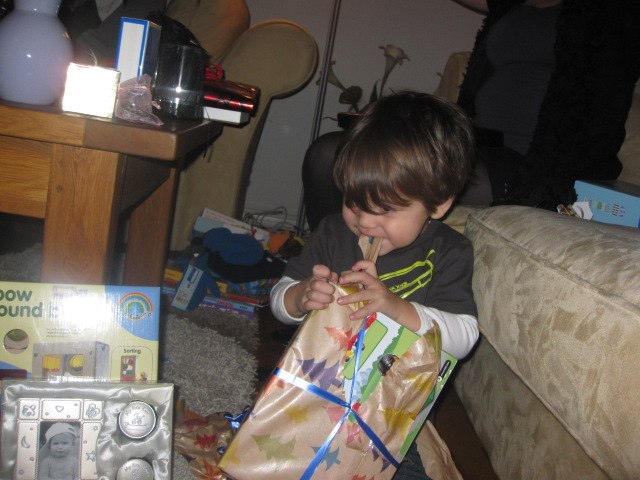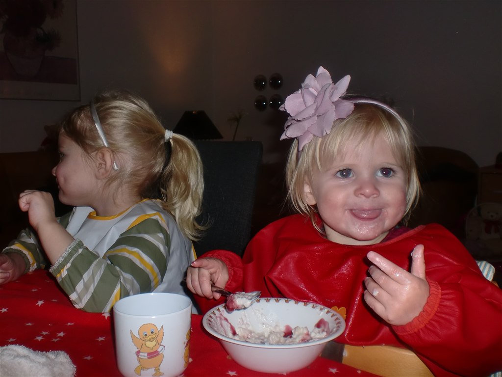 Vi nåde helre ikke at danse om jule træ... pigerne gik kolde kl 20.10, lige da vi skulle havde deserten... men de nåde at pakke alle de flotte gaver op... så nu leges der bare på livet løs..