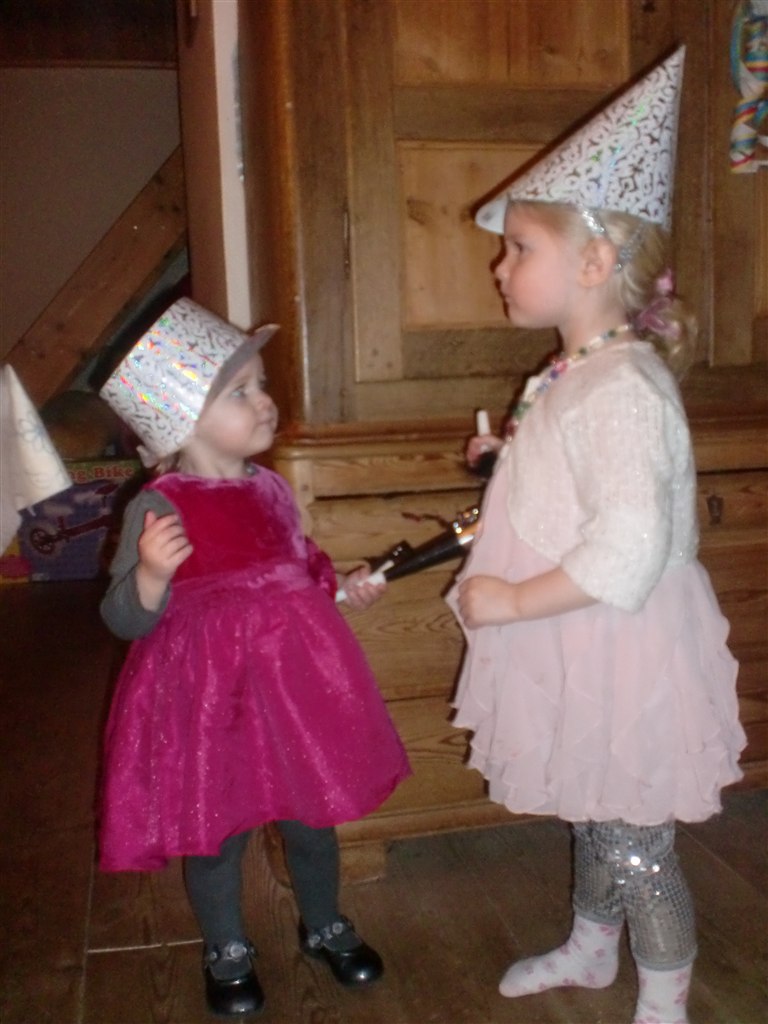 Og så dansede vi rundt i stuen med nytårhatte på og truttede i horn og fold-ud-ruller