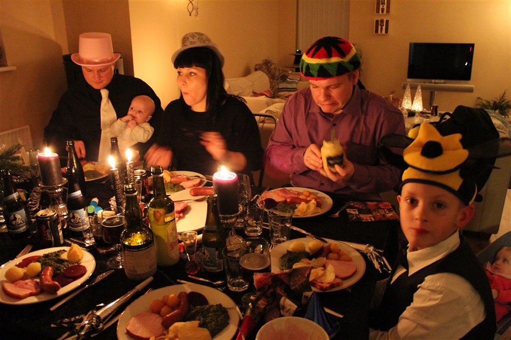 Vi havde en dejlig aften i selskab med min kusine, hendes mand og deres 6 mdr´s tvillinger, samt et andet vennepar.. En hyggelig aften, men dog ret komisk under spisesituationen, da der skulle puttes tvillinger, som ikke ville, og derfor begge var oppe og med alligvel, og Peter ville så pludselig puttes under middagen, og så ha mad kl.23.30 igen.. Nåede lige ind i stuen og være med kl.24.. Men en god og dejlig aften....
