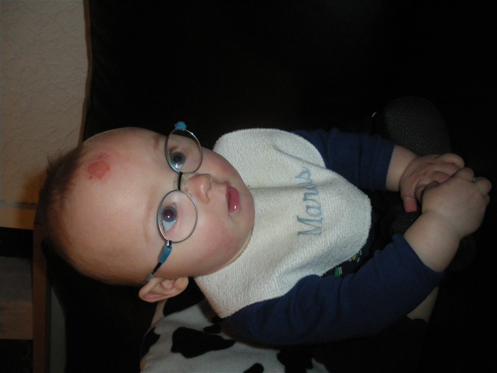 På Marcus værelse er der ikke ret højt til loftet, og da vi legede der nede i formiddag ville jeg lige løfte ham op for at lugte om der var noget i bleen. havde bare ikke tænkt på at jeg stod lige under lampen (hvis pærer bliver MEGA varme)
