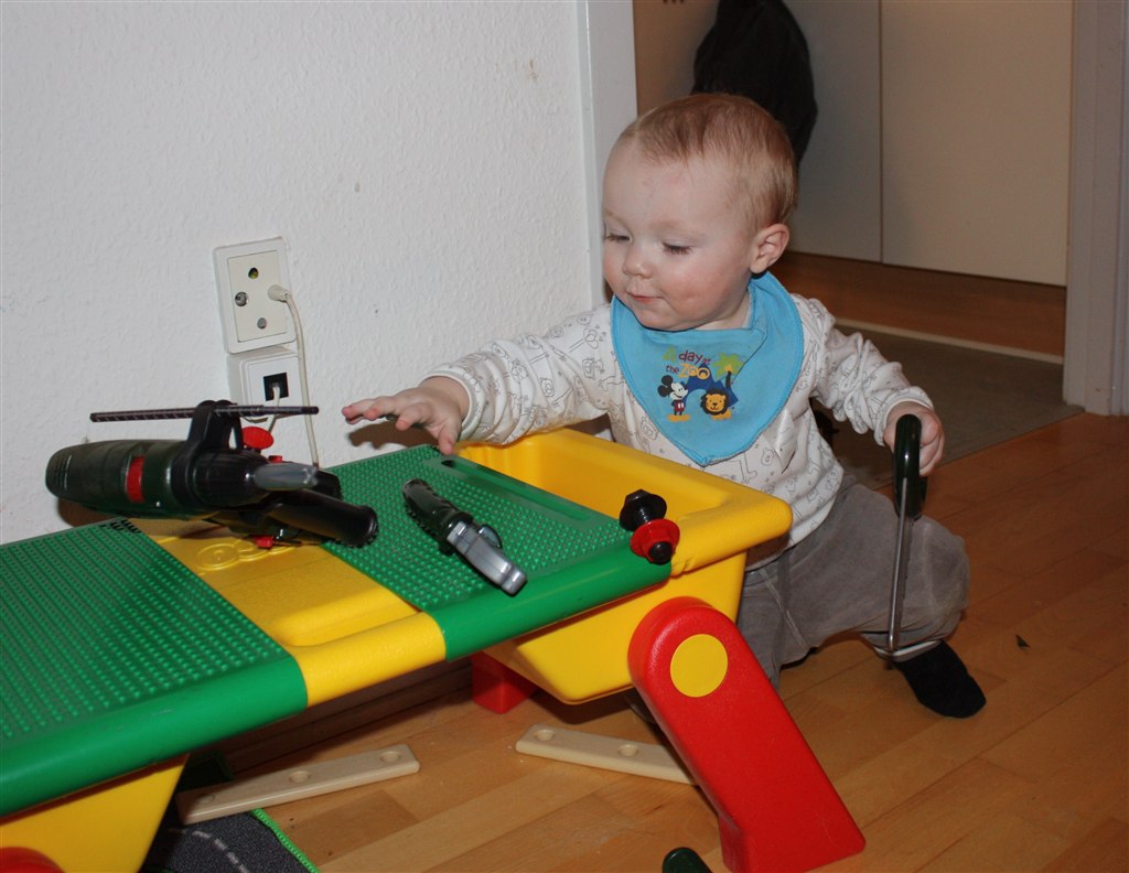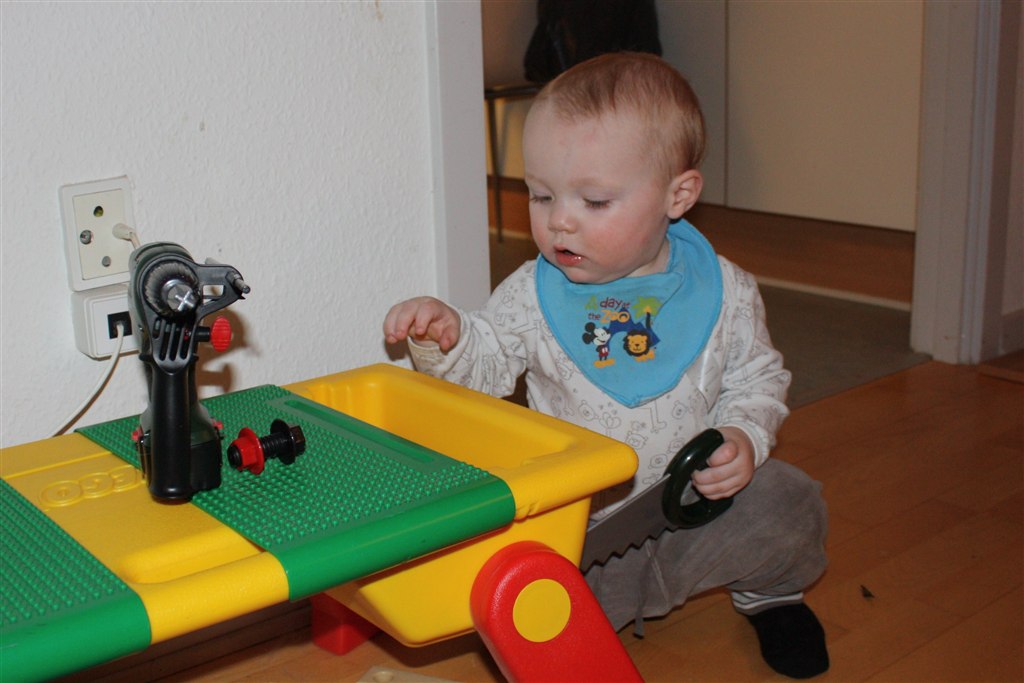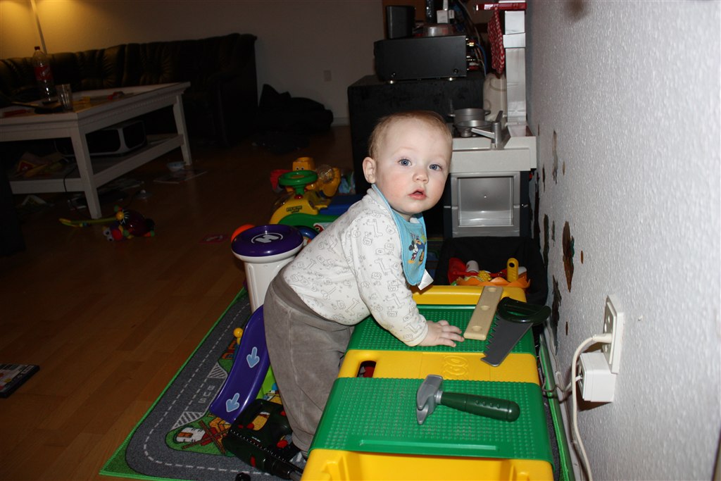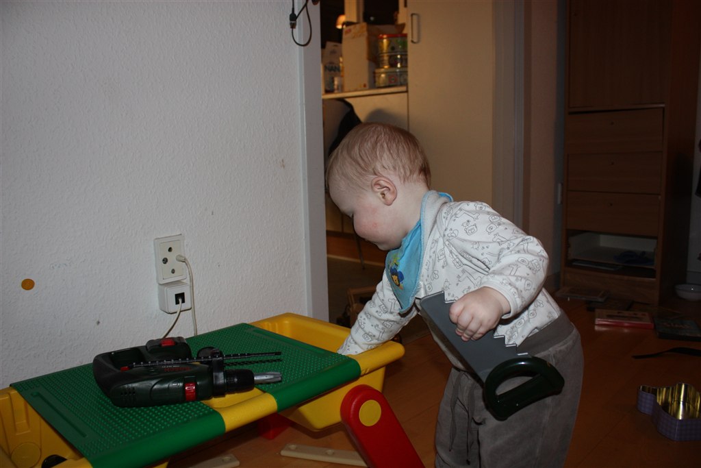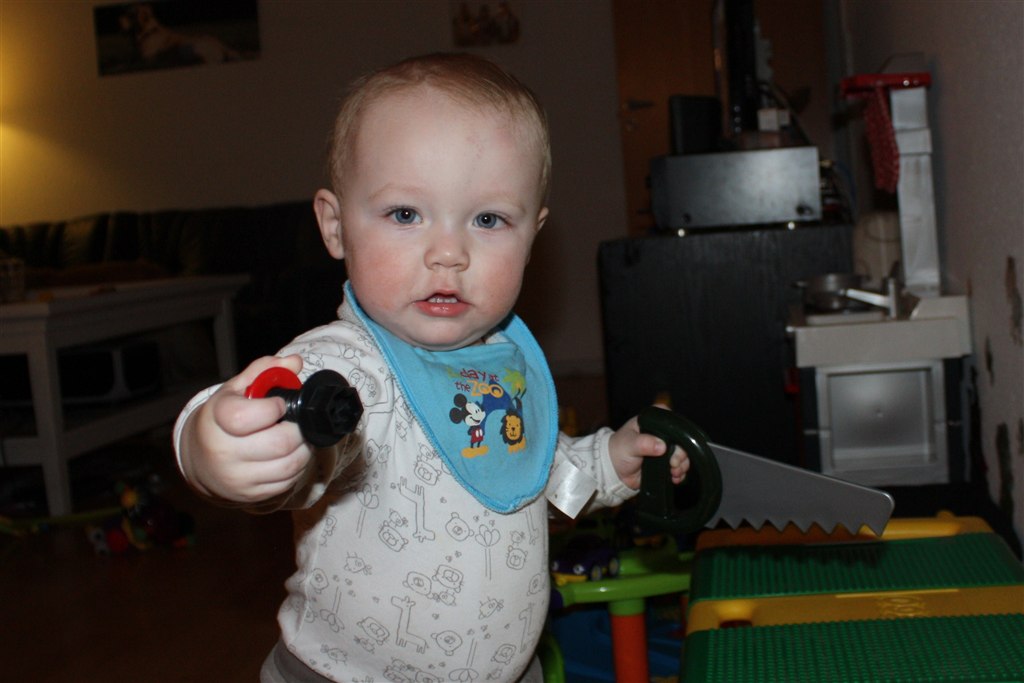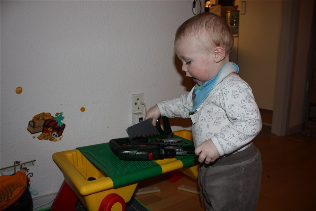 Til fars store glæde fik Liam et håndværker sæt af DP i julegave, og jeg skal love for der bliver hamret og savet og flyttet skruer fra et rum til et andet med STOR iver