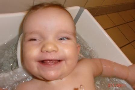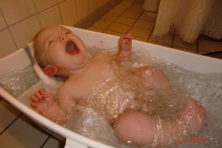 dorthemus skriver: Tak Ja hun hvinede i fryd og plaskede rundt, haha Det er jo skønt med den rumklang der er på et badeværelse..hehe
