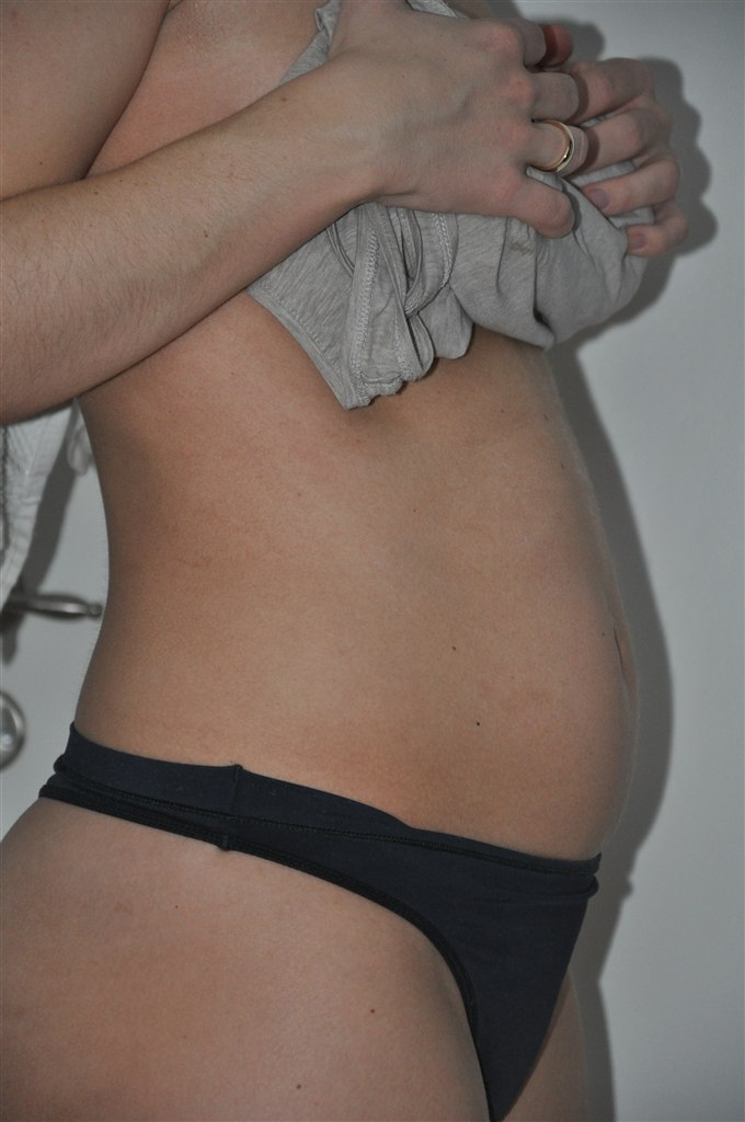 Man kunne først se jeg havde mave på da jeg var 20- 23 uger henne, og det var uden tøj, med tøj syntes jeg ikke selv at man kunne se noget, men kan selvfølgelig godt være at andre kunne