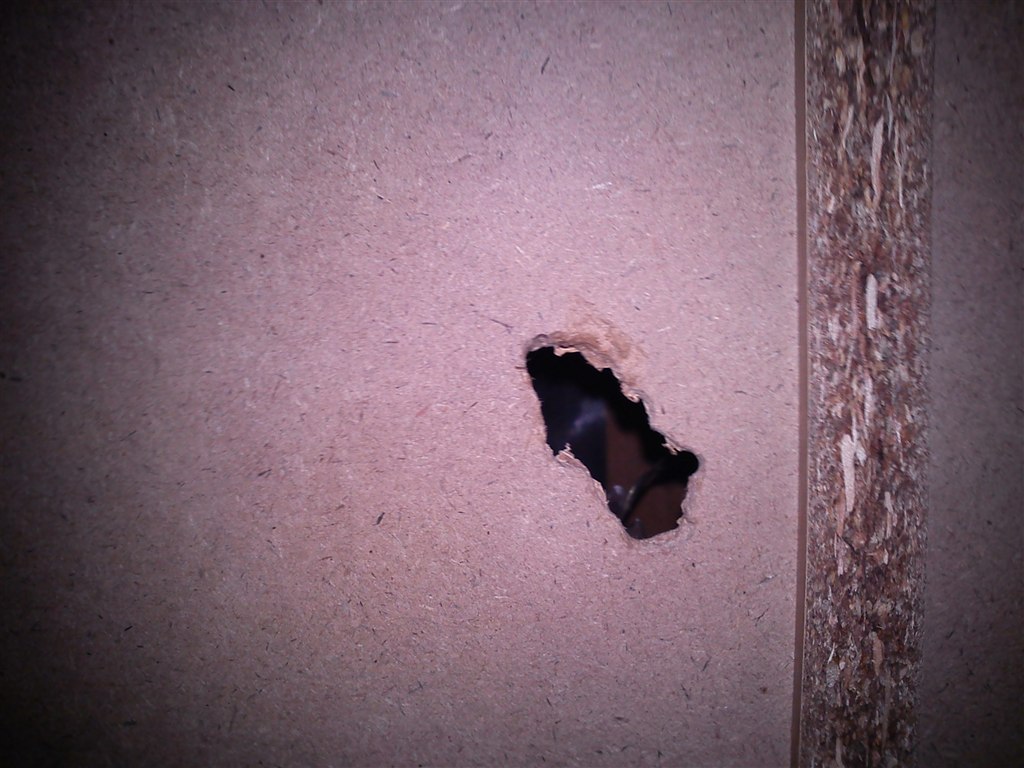 Jeg har brugt den som tv bord, så i højre side inde i skabet har jeg lavet et hul i bagpladen så ledningerne kunne komme ud men er ikke noget man ser..