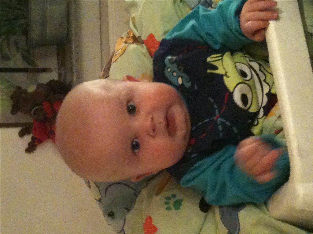 om natten sover han fra 21.30 til 08.00 ca. så moren klager bestemt ikke.